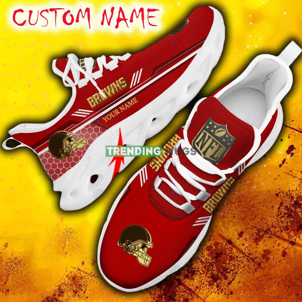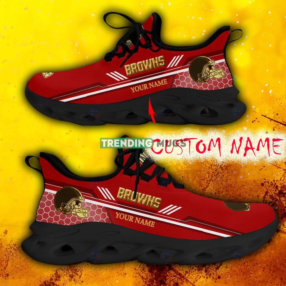 So why settle for ordinary footwear when you can wear your team pride on your feet? Order your Custom Name Cleveland Browns Red All Over Printed Max Soul Shoes today and take your fandom to the next level!