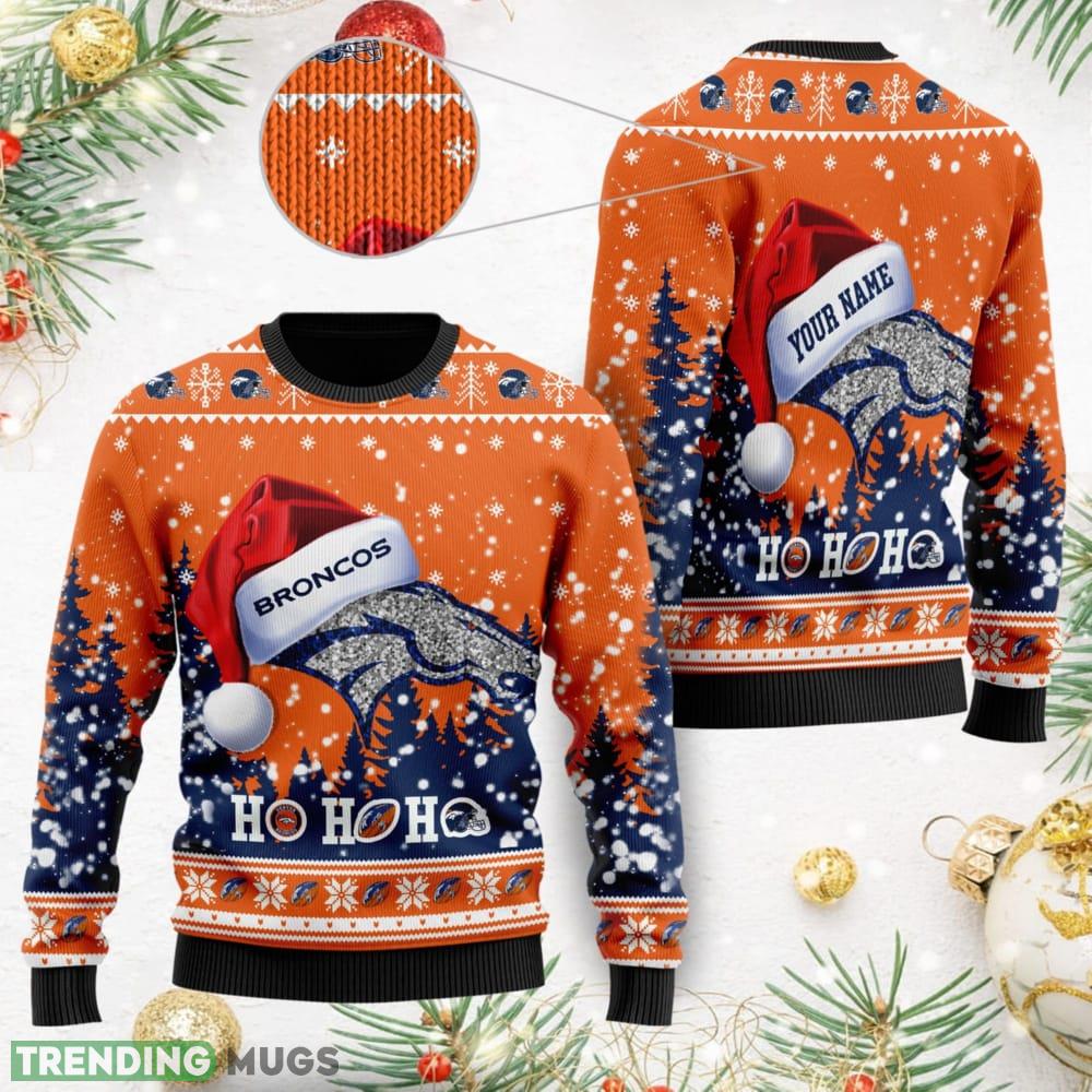 Custom Name Denver Broncos Symbol Wearing Santa Claus Hat Ho Ho Ho All Over Print Sweater Gift Christmas Informations: