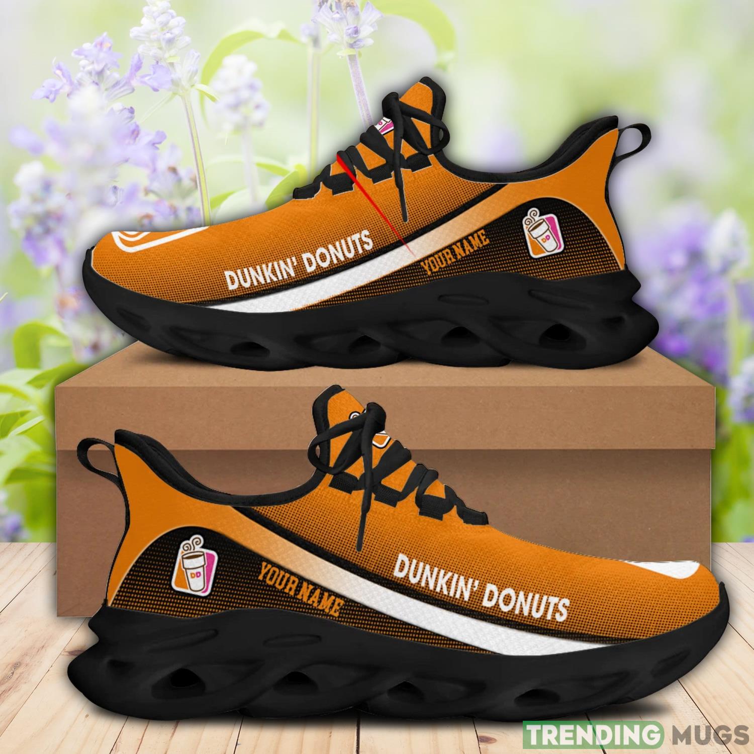 Don’t miss out on the latest footwear trend – grab your own pair of Custom Name Dunkin’ Donuts Max Soul Shoes today! Whether you’re hitting the gym or strolling around town, these sneakers will effortlessly elevate your style. Treat yourself or surprise a loved one with this unique and thoughtful gift. Order now and experience the perfect blend of fashion and comfort!