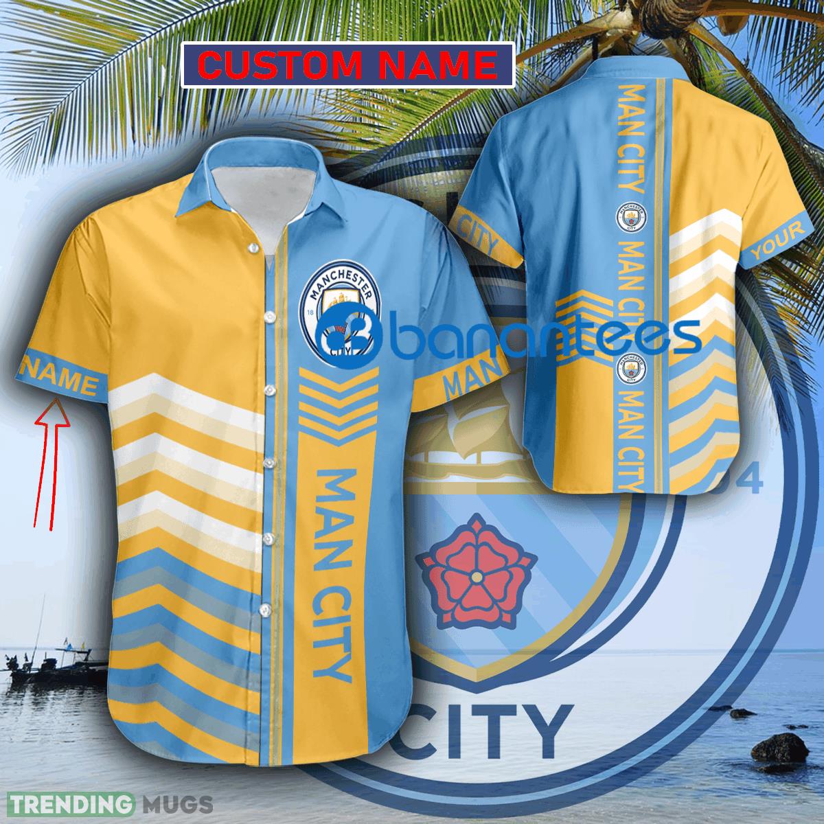 Custom Name EPL Manchester City Colorful Logo AOP Hawaiian Shirt Gift For Fans Details: