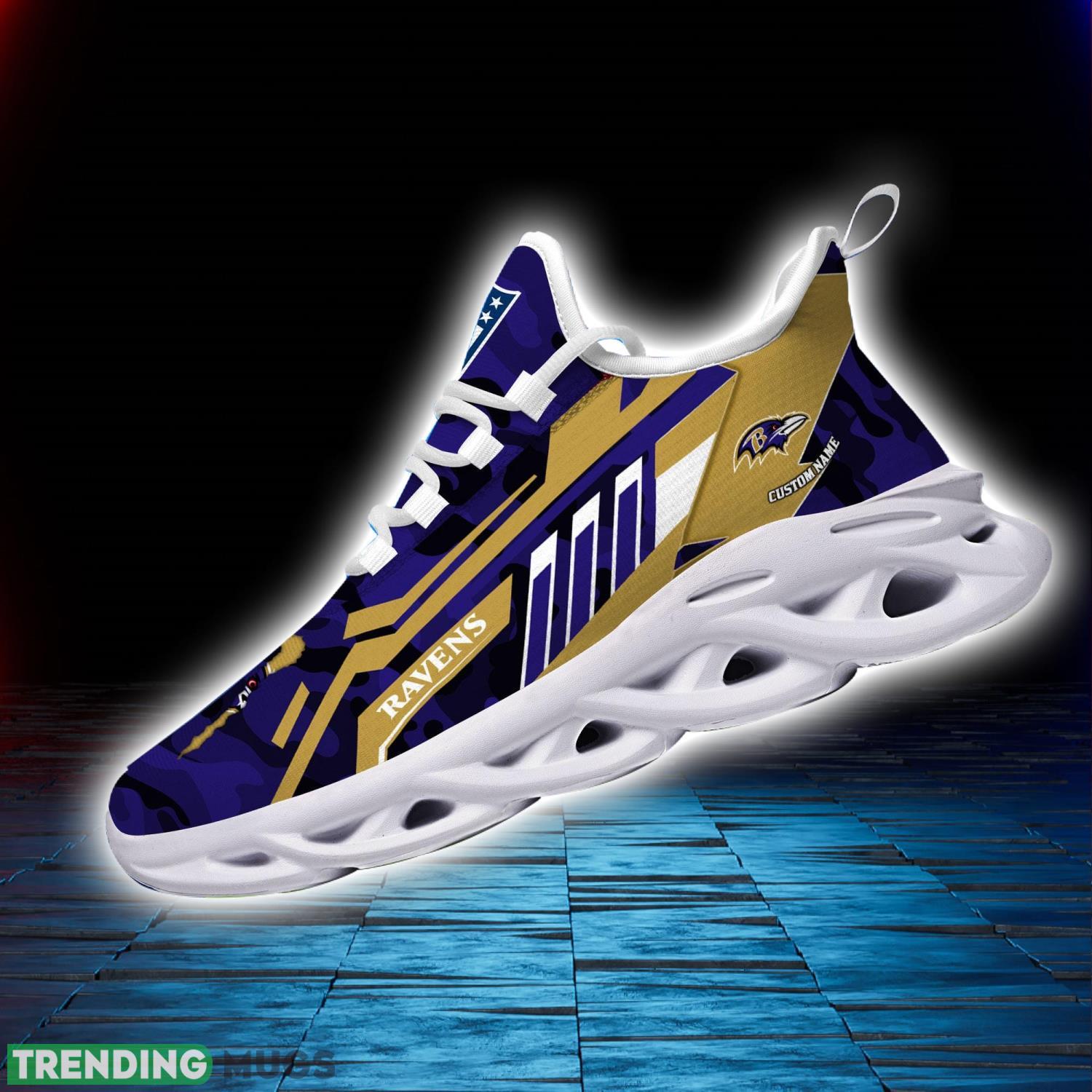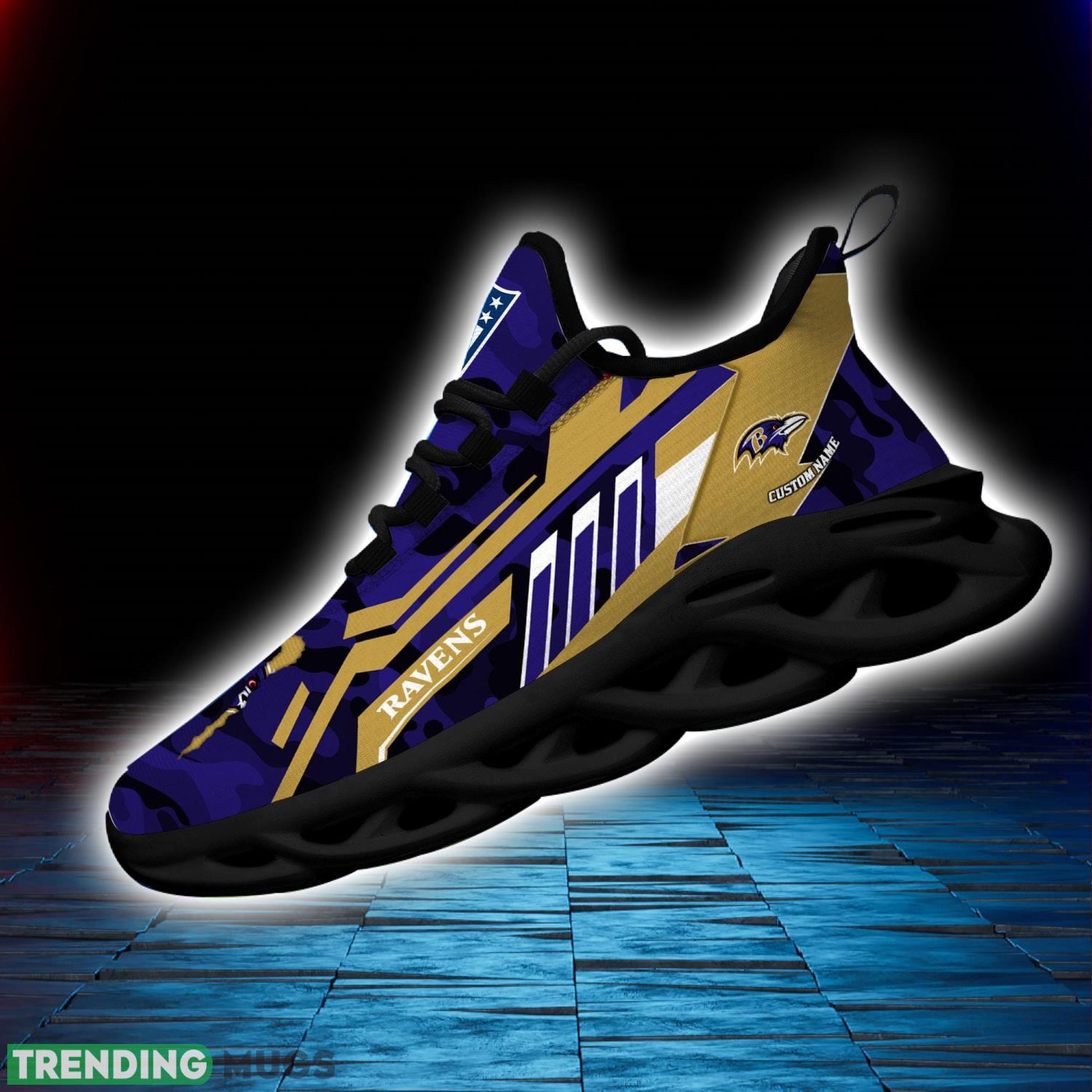 Custom Name Gift Baltimore Ravens Camo Striped Style Max Soul Shoes For Fans information:
