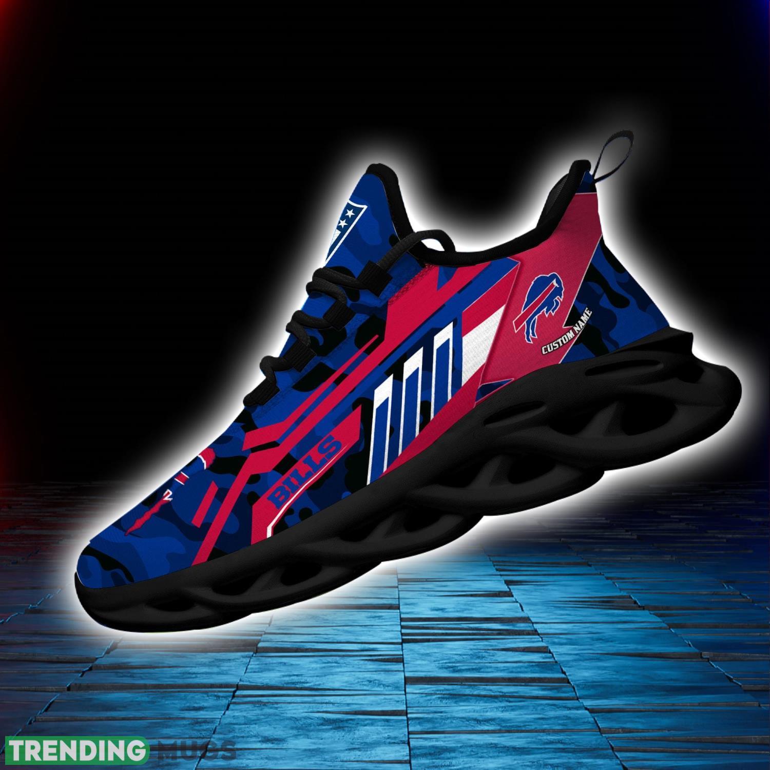 Looking for the perfect gift for a die-hard Buffalo Bills fan? Look no further than our Custom Name Gift Buffalo Bills Camo Striped Style Max Soul Shoes!