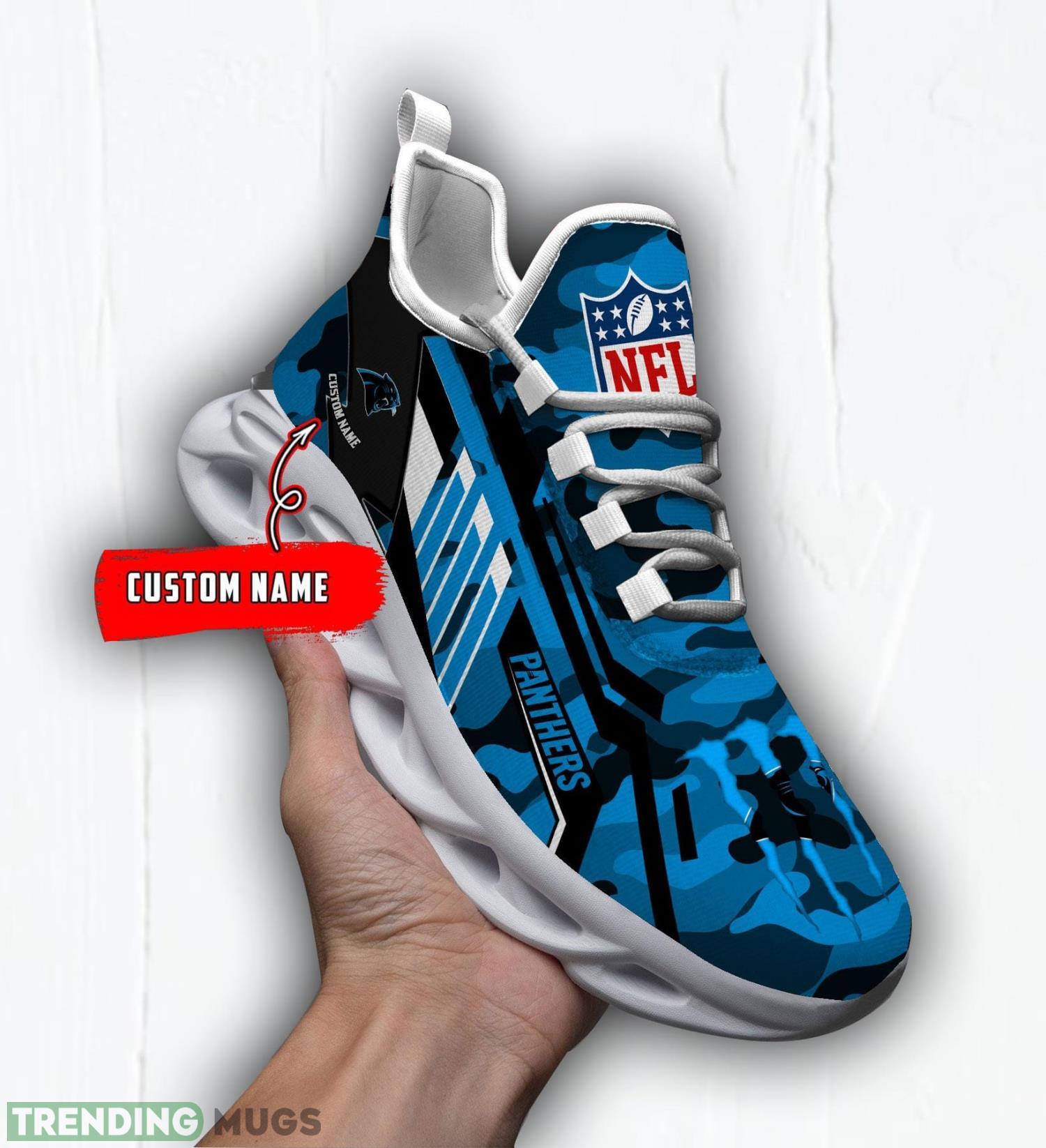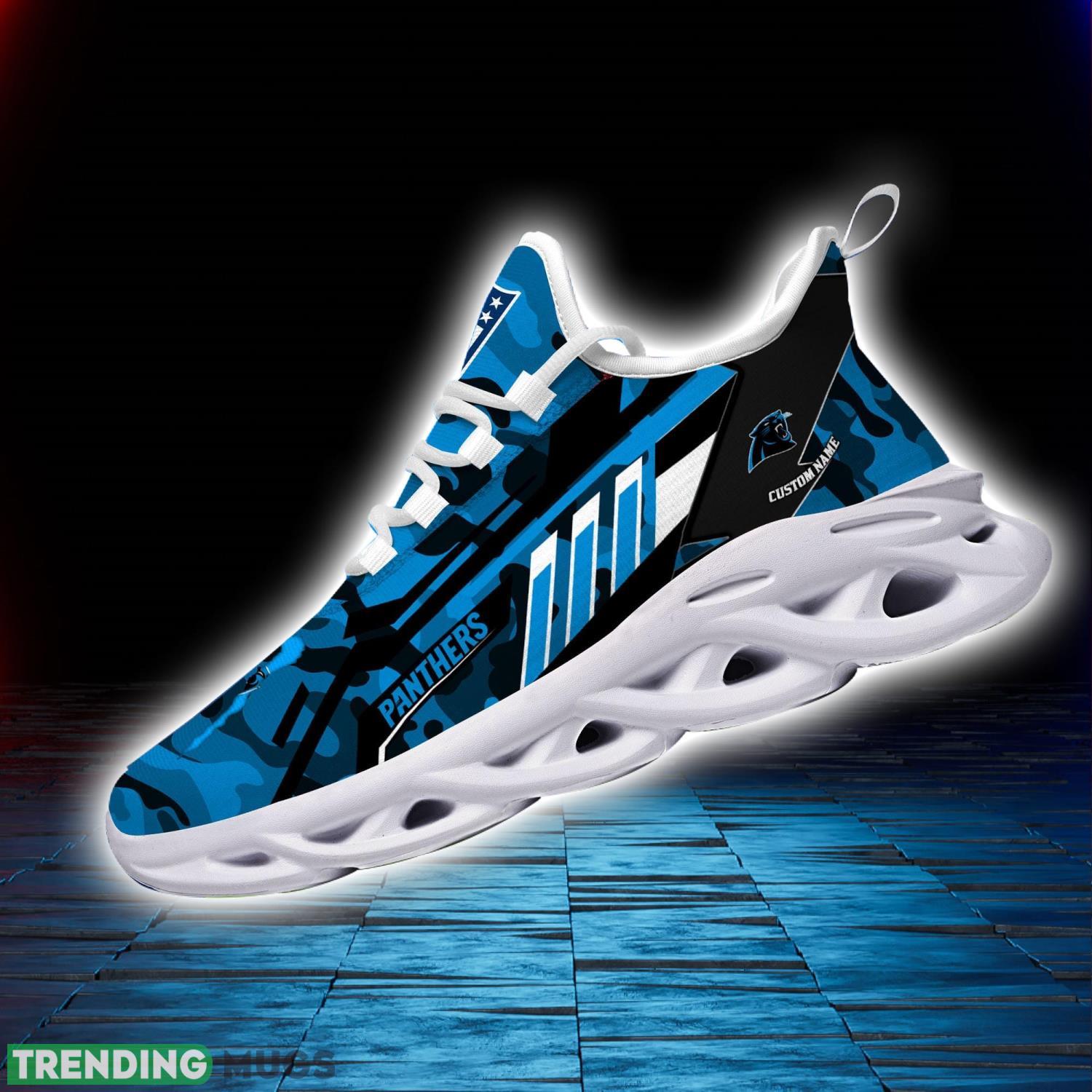 Custom Name Gift Carolina Panthers Camo Striped Style Max Soul Shoes For Fans information:
