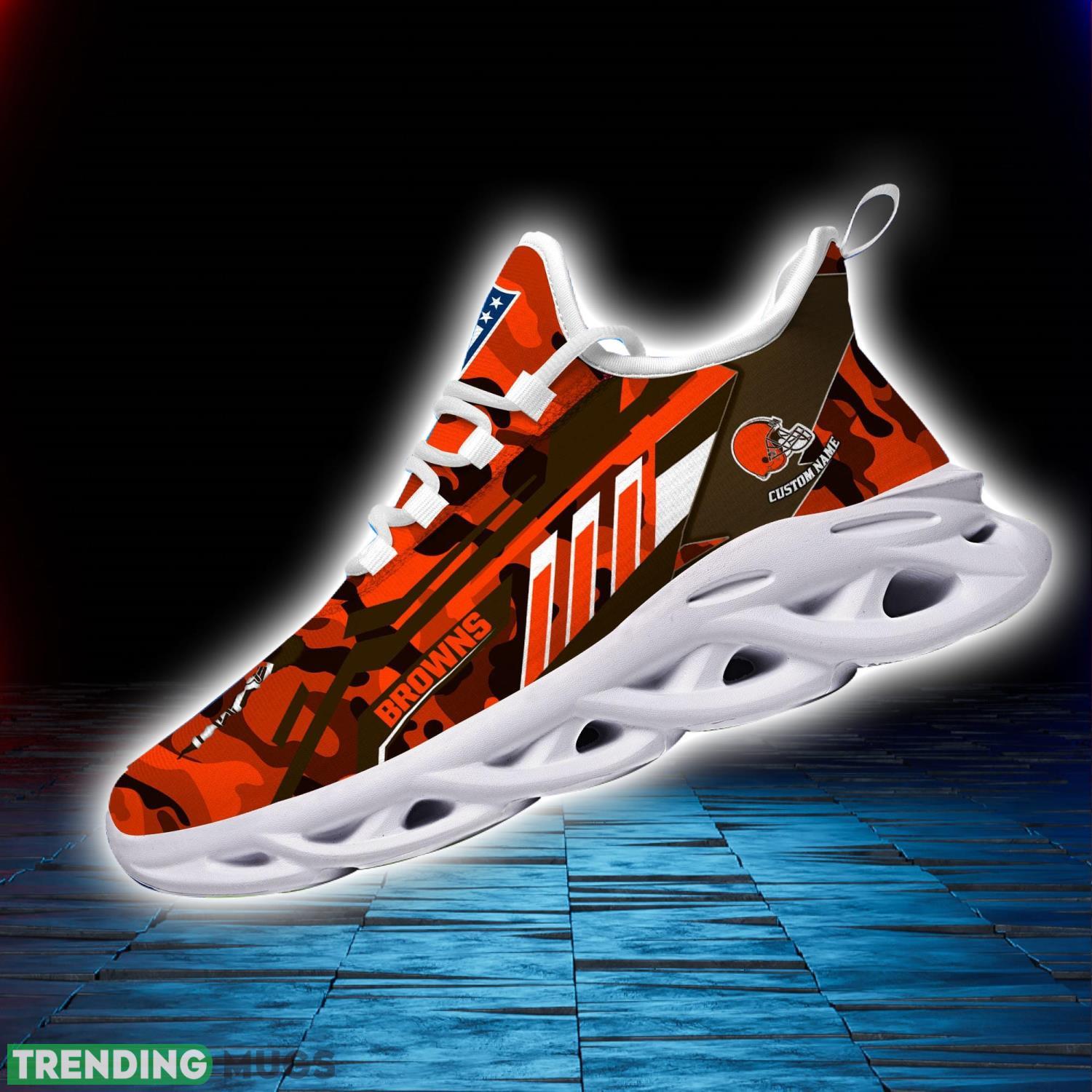 Get ready to show off your team spirit in style with the Custom Name Gift Cleveland Browns Camo Striped Style Max Soul Shoes! These shoes are a must-have for any dedicated Cleveland Browns fan looking to stand out from the crowd.