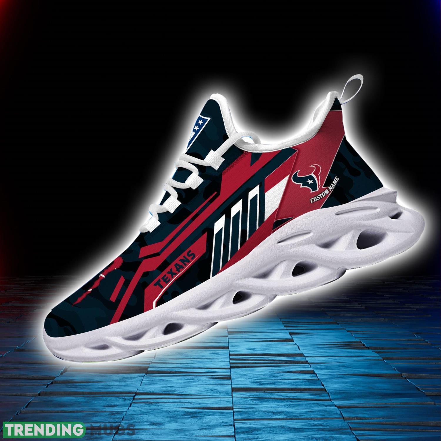 Don’t miss out on the opportunity to own these Custom Name Gift Houston Texans Camo Striped Style Max Soul Shoes. Step up your game day fashion and proudly represent the Houston Texans in style. Order yours today and become the envy of every fan out there!
