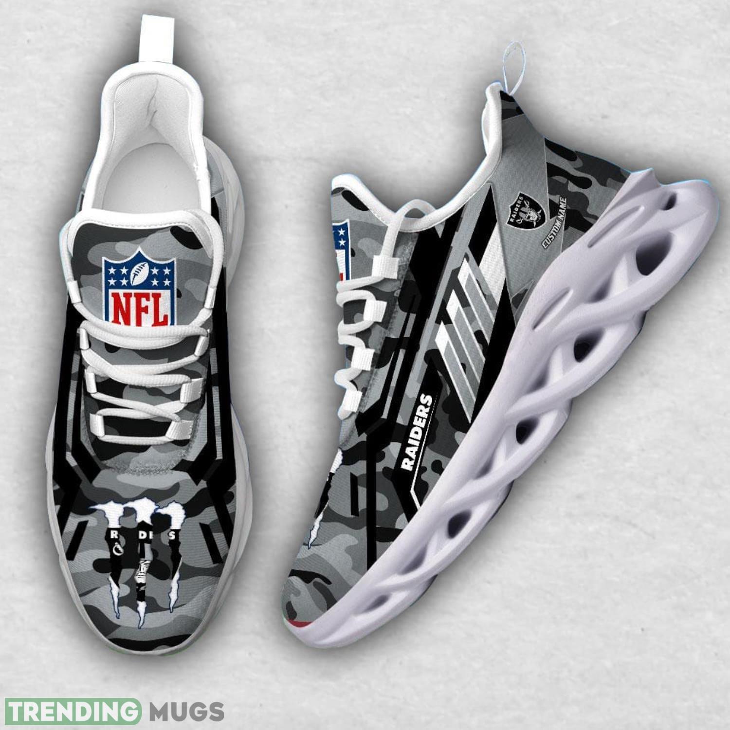 With our Custom Name Gift Las Vegas Raiders Camo Striped Style Max Soul Shoes For Fans, you can showcase your team pride and individuality in one sleek package. Don’t miss out on the opportunity to own a truly one-of-a-kind piece that will make you the envy of every Raiders fan. Order yours today and step into game day greatness!