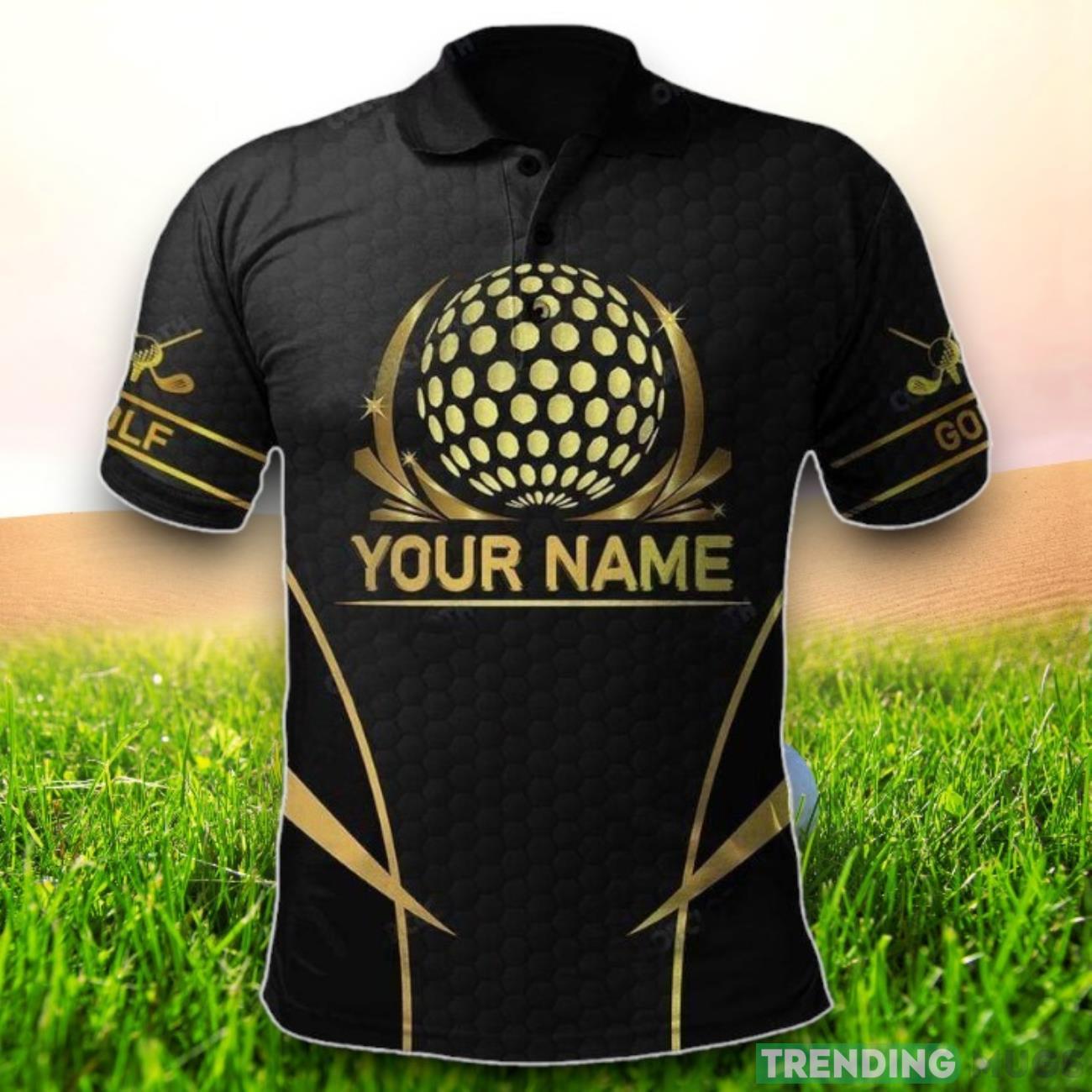Custom Name Golden Golf Ball Polo Shirt Information: