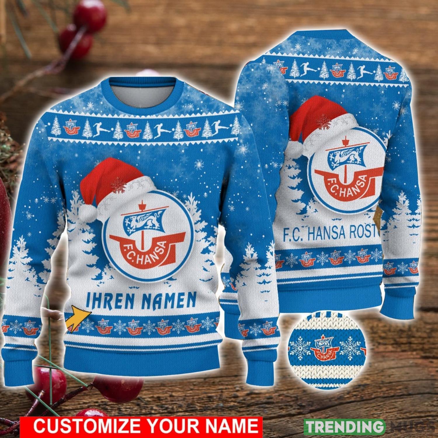 But what truly sets this sweater apart is the customizable touch. Add your name or the name of your loved ones to the Hansa Rostock design, creating a unique and personalized holiday statement. Whether it’s a gift or a treat for yourself, this custom sweater will surely bring a smile to everyone’s face.