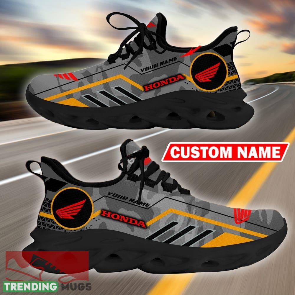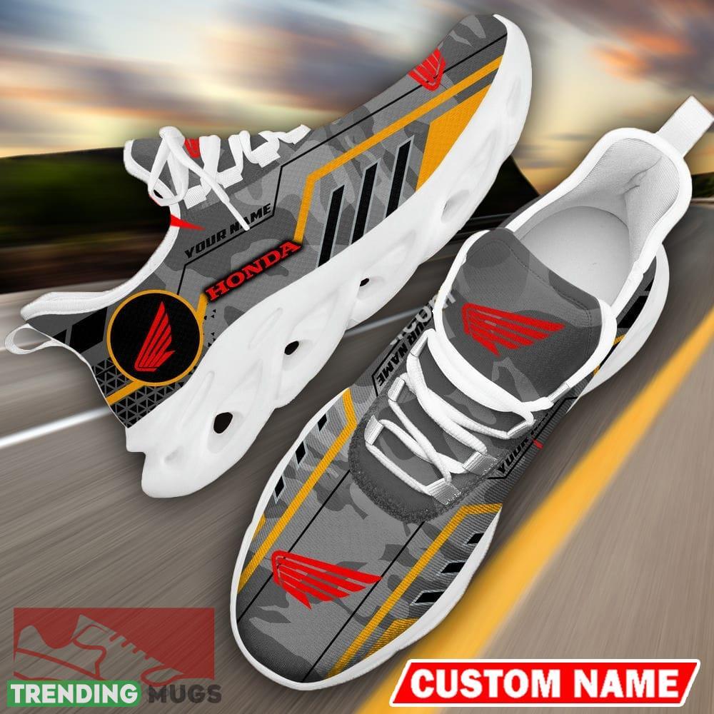 Custom Name Honda Motorcycle Logo Camo Grey Max Soul Sneakers Racing Car And Motorcycle Chunky Sneakers information: