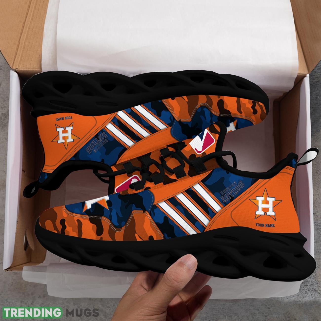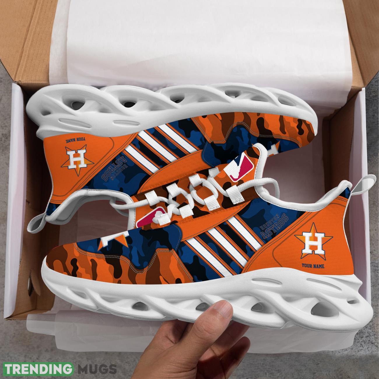 Get ready to show off your love for the Houston Astros with our Custom Name Houston Astros Personalized Sneakers! These Max Soul Shoes feature a unique Camo Pattern and White Striped design that will make you stand out in any crowd.