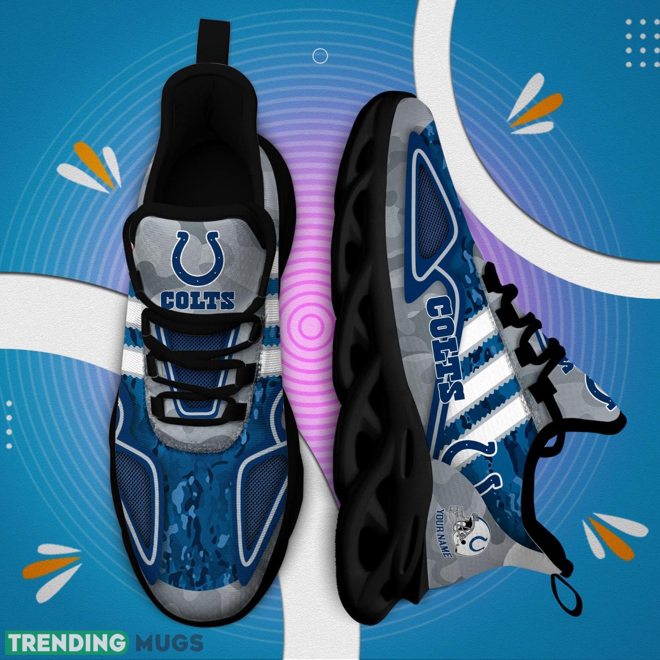 Don’t miss out on the opportunity to showcase your love for the Indianapolis Colts in a unique and fashionable way. Order your Custom Name Indianapolis Colts Camo Pattern Lover Max Soul Shoes for Men and Women today and step up your game both on and off the field!