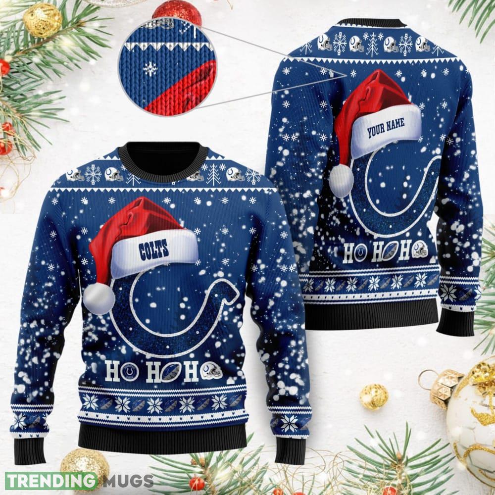 Custom Name Indianapolis Colts Symbol Wearing Santa Claus Hat Ho Ho Ho All Over Print Sweater Gift Christmas Informations: