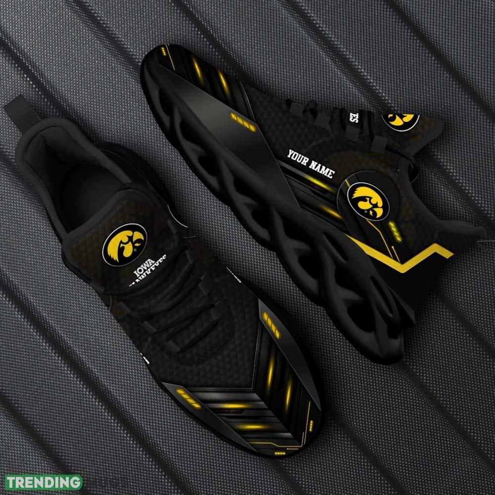 Custom Name Iowa Hawkeyes Team Black Effortless Sports Sneakers Ideas For Men And Women Gift Max Soul Shoes information: