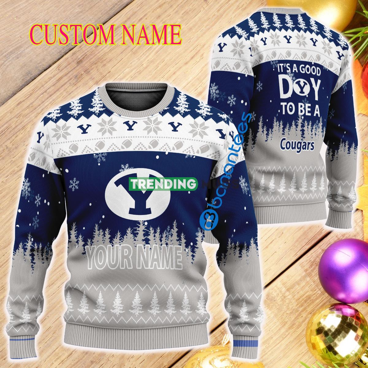 Custom Name It A Good Day To Be A BYU Cougars Ugly Christmas Sweater – Custom Name It A Good Day To Be A BYU Cougars Ugly Christmas Sweater
