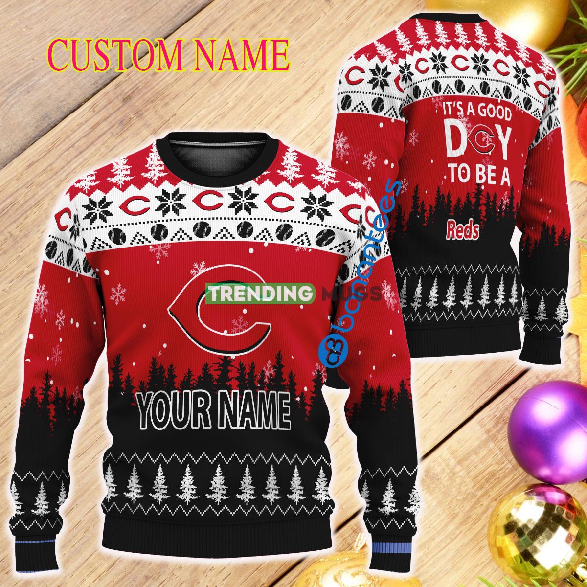 Custom Name It A Good Day To Be A Cincinnati Reds Ugly Christmas 3D Sweater Informations: