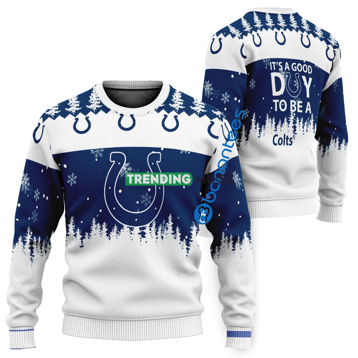 Whether you’re attending an ugly Christmas sweater party, cheering on your team during game day, or simply spreading holiday cheer, our Custom Name It A Good Day To Be A Indianapolis Colts Ugly Christmas Sweater is the ultimate choice. It makes for a perfect gift for any die-hard Colts fan in your life, too!
