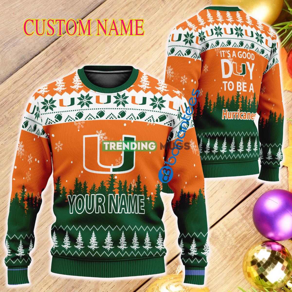 Custom Name It A Good Day To Be A Miami (FL) Hurricanes Ugly Christmas 3D Sweater Informations: