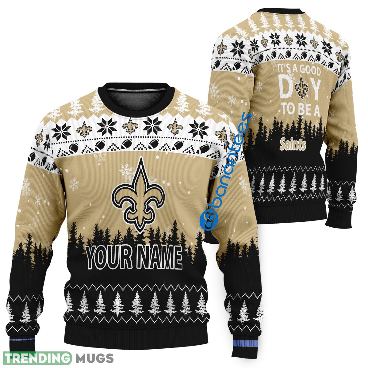Get ready to embrace the holiday season with a touch of football flair by adding our Custom Name It A Good Day To Be A New Orleans Saints Ugly Christmas Sweater to your collection today!