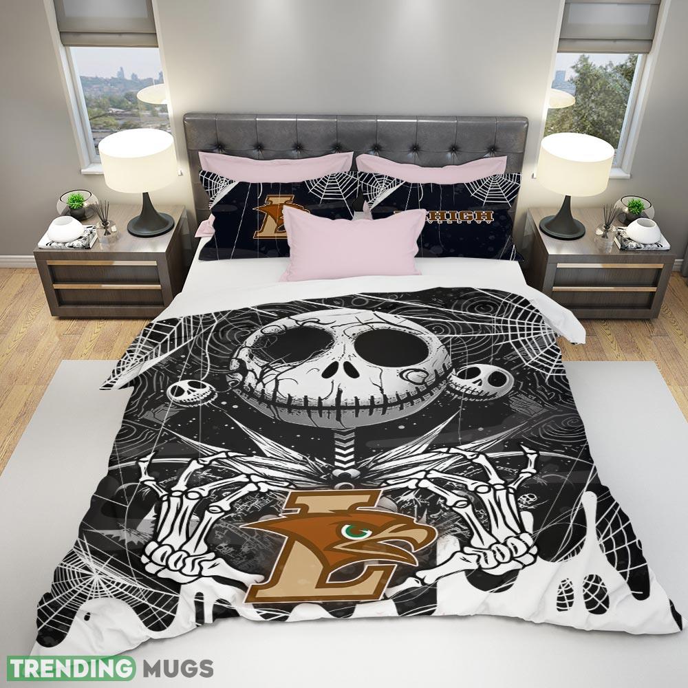 Transform your bedroom into a Halloween wonderland with the Custom Name Lehigh Mountain Hawks Jack Skellington Halloween Nightmare-3D Quilt Sets Full Size Bedding. Order now and indulge in the perfect blend of team pride and spooky vibes all year round!