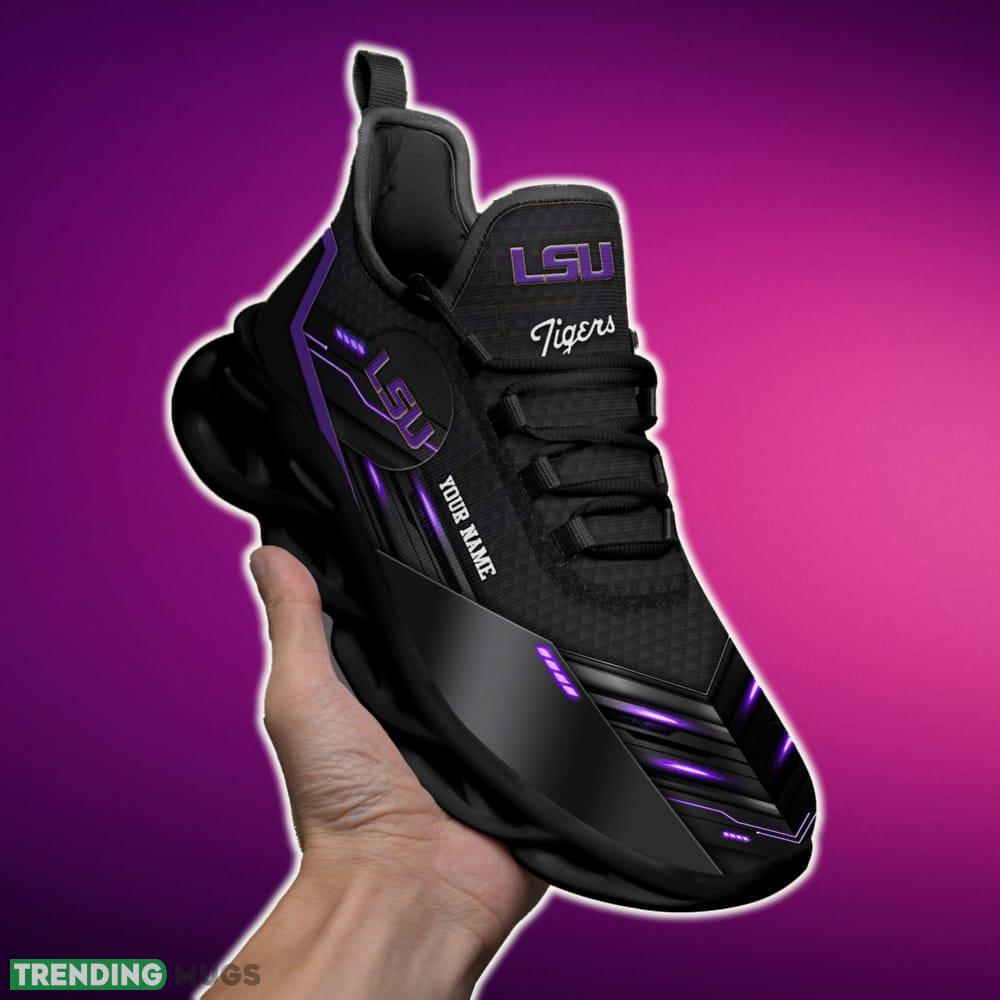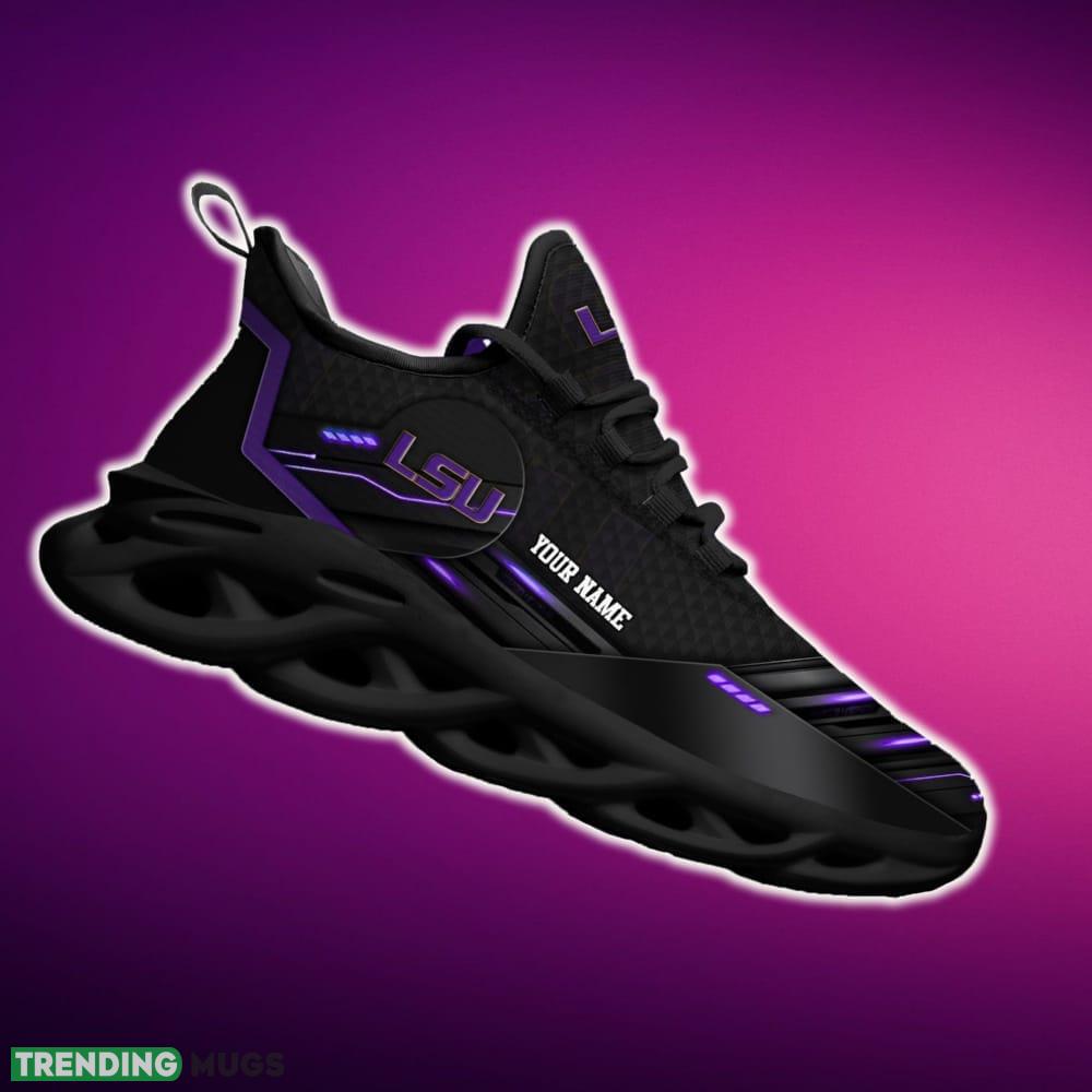 Upgrade your game day style with our Custom Name LSU Tigers Team Black Max Soul Shoes! Designed for die-hard NCAA fans like you, these running shoes are the ultimate must-have for any LSU Tigers enthusiast.