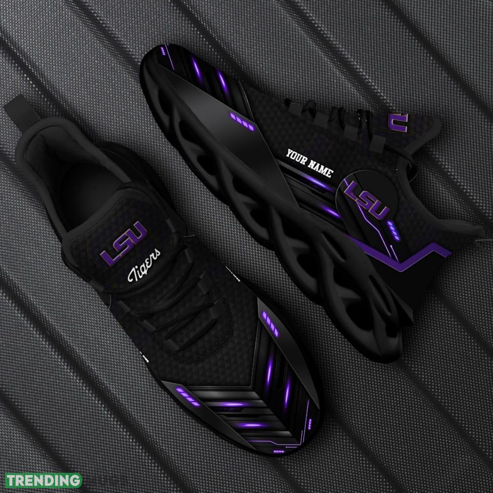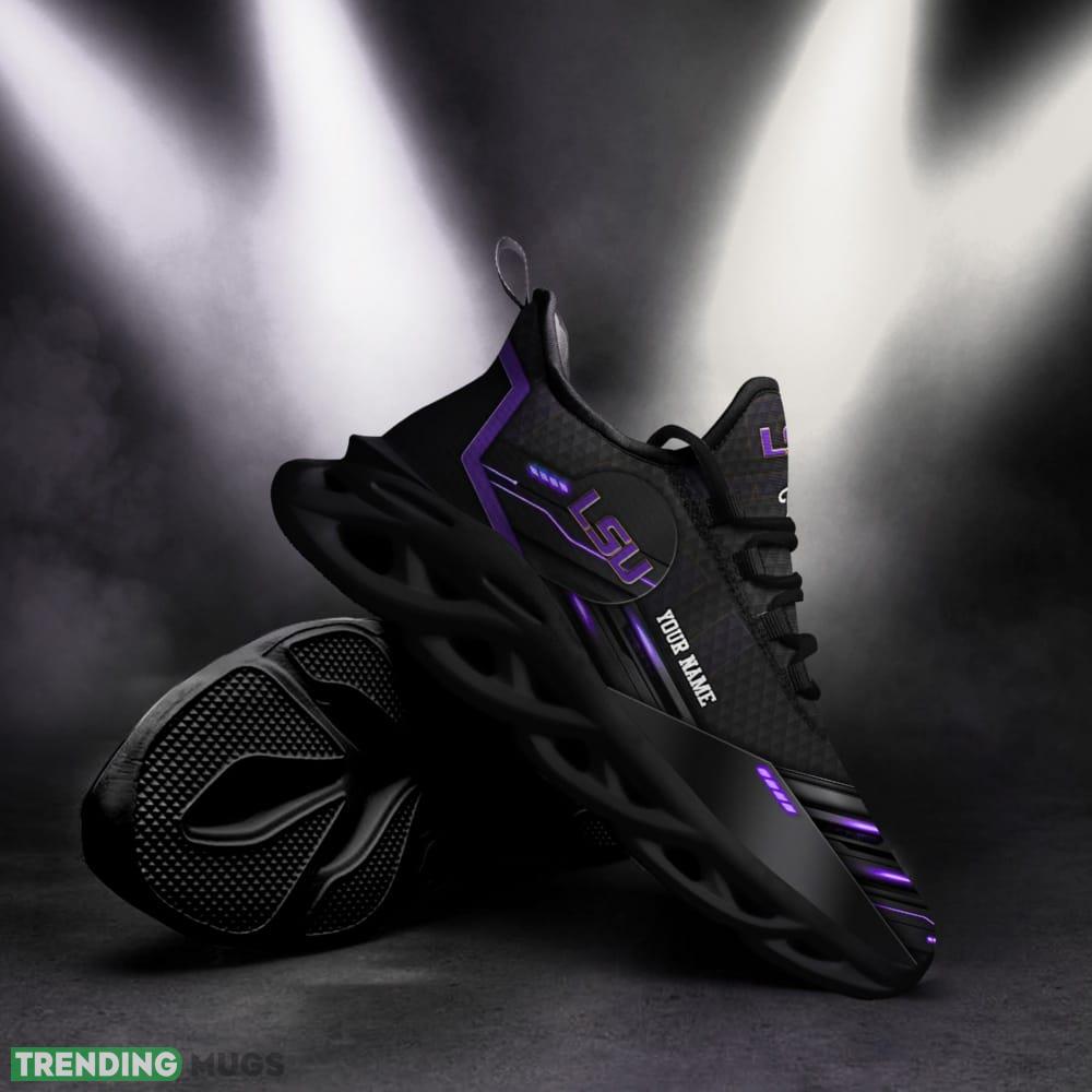 Don’t miss out on the opportunity to elevate your game day wardrobe with our Custom Name LSU Tigers Team Black Max Soul Shoes. Grab a pair today and let your feet do the talking as you proudly support your favorite NCAA team!