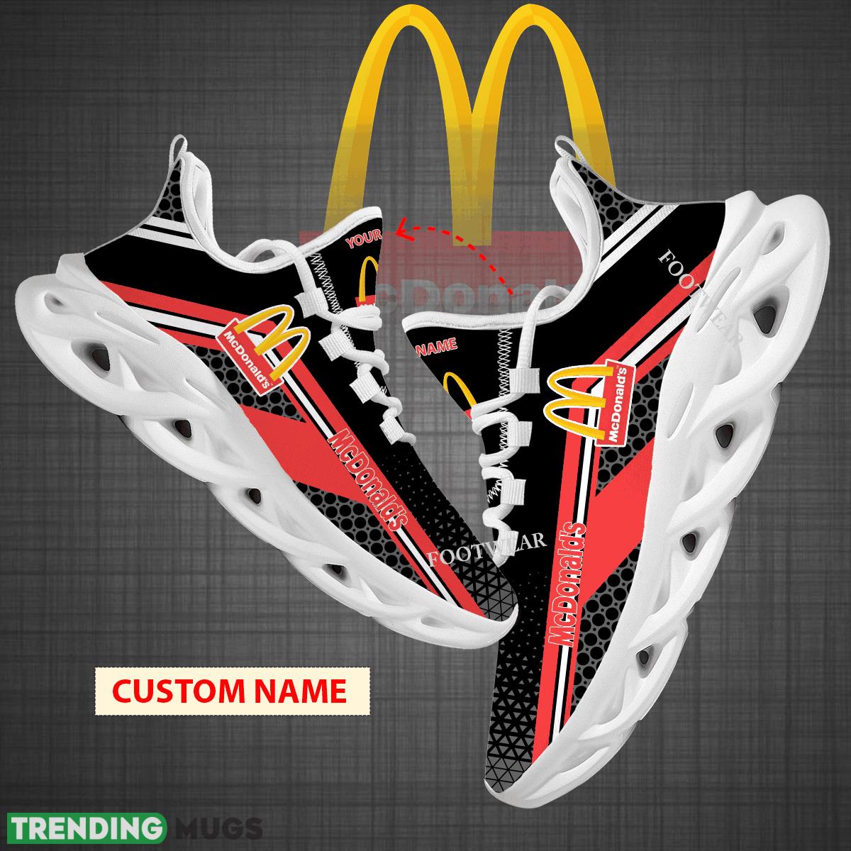 Step out in style with our Custom Name Mcdonald’s Logo Max Soul Shoes! Designed for big fans of the iconic fast-food chain, these running sneakers are the perfect gift for any dedicated McDonald’s enthusiast. Made with high-quality materials and featuring the classic golden arches logo, these shoes are sure to turn heads wherever you go. Whether you’re hitting the gym or running errands, these shoes will keep you comfortable and stylish. Don’t miss out on the chance to show off your love for McDonald’s with these unique and eye-catching sneakers!