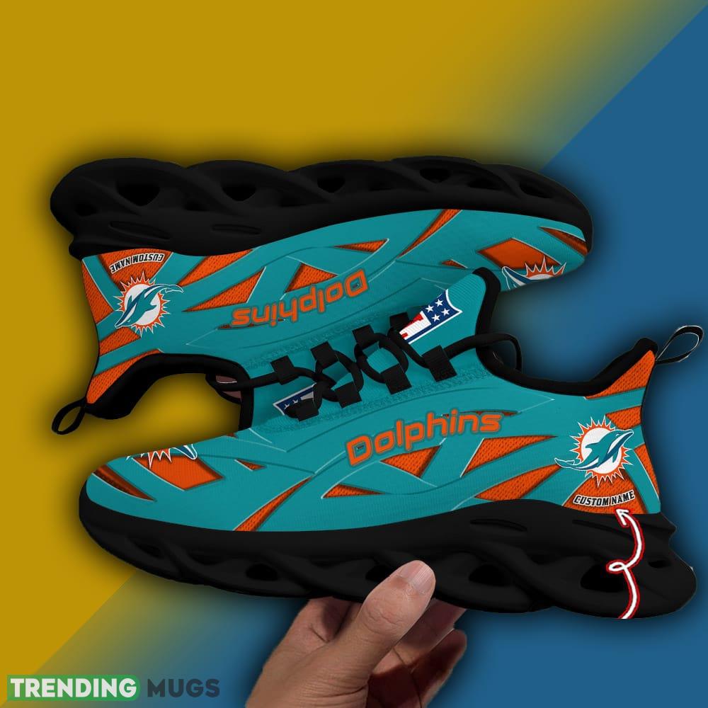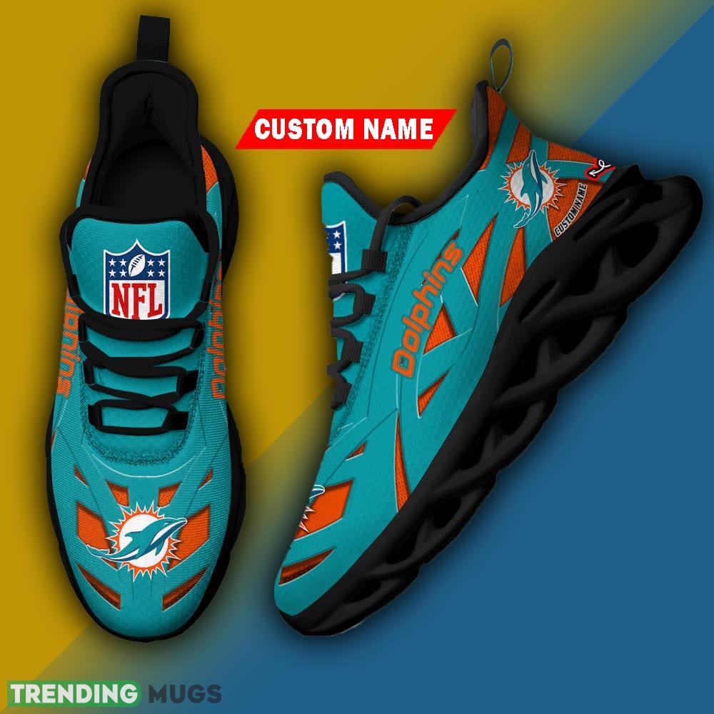 Don’t miss out on the opportunity to showcase your love for the Miami Dolphins in a unique and stylish way. Order your Custom Name Miami Dolphins NFL Striped Max Soul Shoes today and step into the spotlight with confidence.