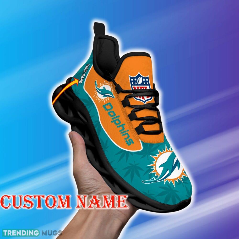 Are you a die-hard Miami Dolphins fan who loves to flaunt your team spirit wherever you go? Look no further, because we have the perfect footwear for you! Presenting our Custom Name Miami Dolphins Weed Max Soul Shoes Imagery Gift Fans Running Sneakers New Shoes.