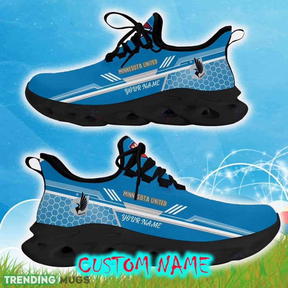 Featuring the iconic blue color of Minnesota United, these running shoes will make you stand out from the crowd. The custom name option allows you to personalize your shoes with your own name, making them truly one-of-a-kind.