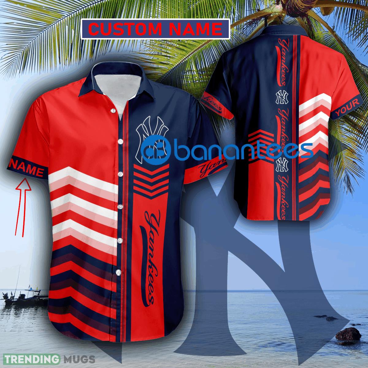 Custom Name MLB New York Yankees Tropic AOP Hawaiian Shirt For Men And Women Details: