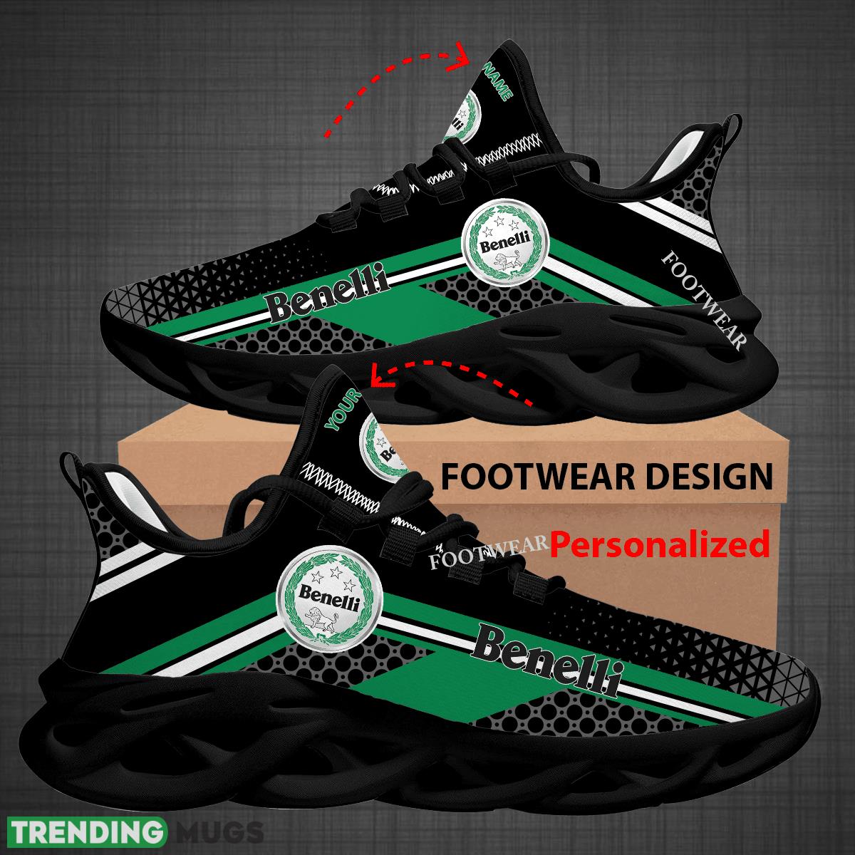This Custom Name Motorcycle Benelli Logo New Design Max Soul Shoes For Big Fans Runing Sneakers Gift is a breathable, lightweight, and comfortable casual outdoor shoe that has a unique design. It is made of a mesh fabric which makes it sweat absorbent and breathable, while the rubber bottom ensures traction, comfort, and durability. It is available in two colors: black or white sole. There are two styles of shoelace holes so you can choose your preference.