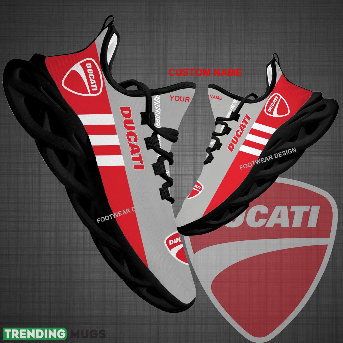 Get ready to hit the road in style with our Custom Name Motorcycle Ducati Logo New Style Max Soul Shoes! These sneakers are perfect for big fans of Ducati motorcycles who also love to run. The sleek design and comfortable fit make them the ideal gift for any motorcycle enthusiast. Stand out from the crowd and show off your love for Ducati with these one-of-a-kind shoes. Order yours today and step up your sneaker game!