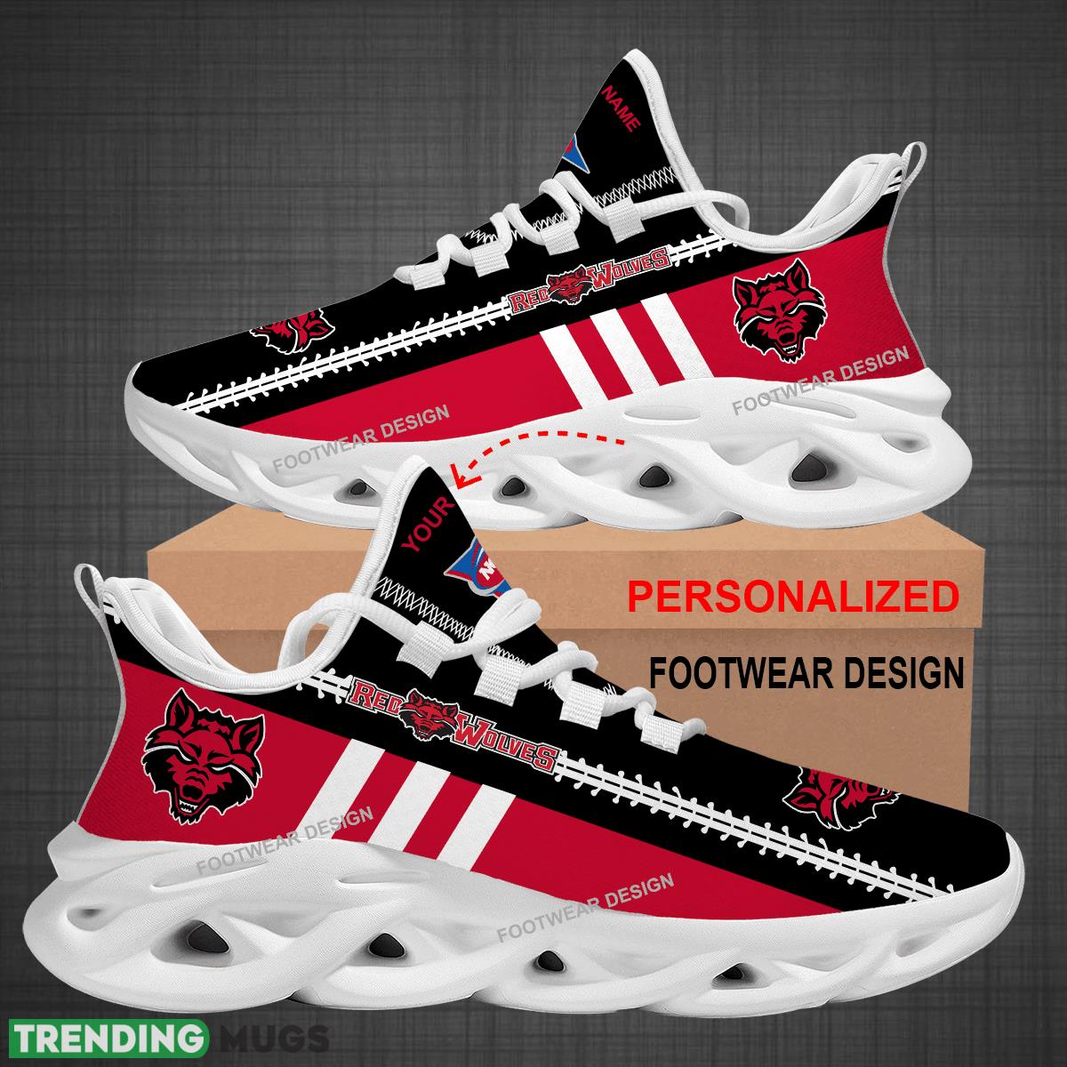 Show off your team spirit with our Custom Name NCAA Arkansas State Red Wolves Logo New Max Soul Shoes! These sneakers are the perfect gift for big fans who love to show their support while staying stylish. Whether you’re hitting the gym or running errands, these sneakers will keep you comfortable and on-trend. Don’t miss out on the opportunity to personalize these shoes with your name and cheer on the Red Wolves in style!