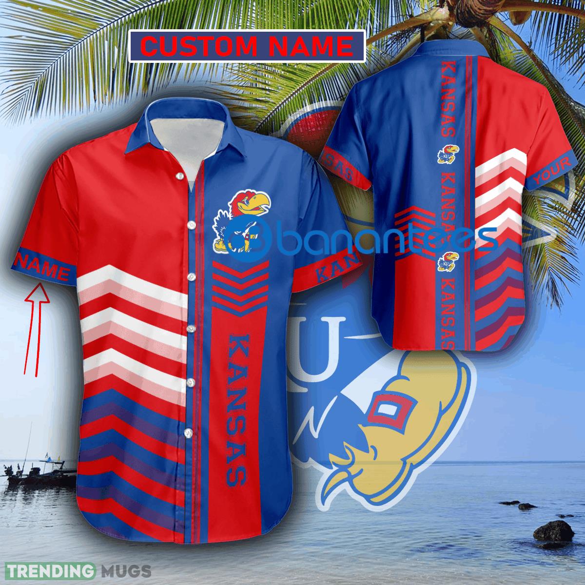 So, why wait? Stand out from the crowd and represent your favorite team with our Custom Name NCAA Kansas Jayhawks Palm Logo Aloha Hawaiian Shirt. Order now and get ready to turn heads wherever you go!