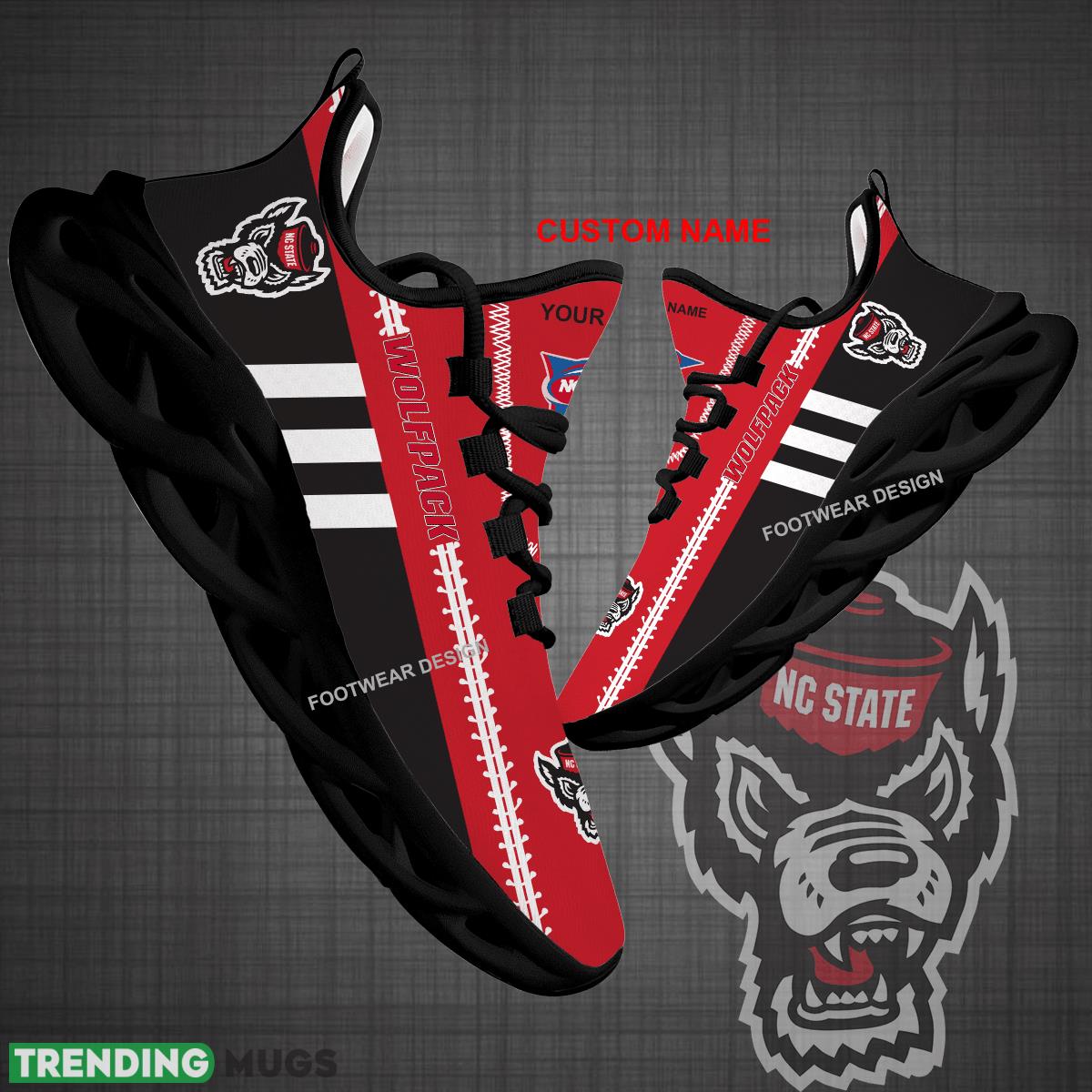 Show off your team pride with our Custom Name NCAA NC State Wolfpack Logo New Max Soul Shoes! These sneakers are perfect for big fans who love to run and want to represent their favorite team in style. Whether you’re hitting the gym or running errands, these shoes will keep you comfortable and looking great. Plus, they make the perfect gift for any Wolfpack fan in your life. Don’t miss out on the opportunity to show your team spirit with these exclusive sneakers. Order yours today!