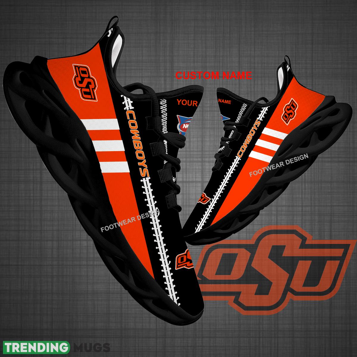 Step out in style and show off your love for the Oklahoma State Cowboys with our Custom Name NCAA Oklahoma State Cowboys Logo New Max Soul Shoes. These running sneakers are perfect for big fans looking to make a statement both on and off the field.