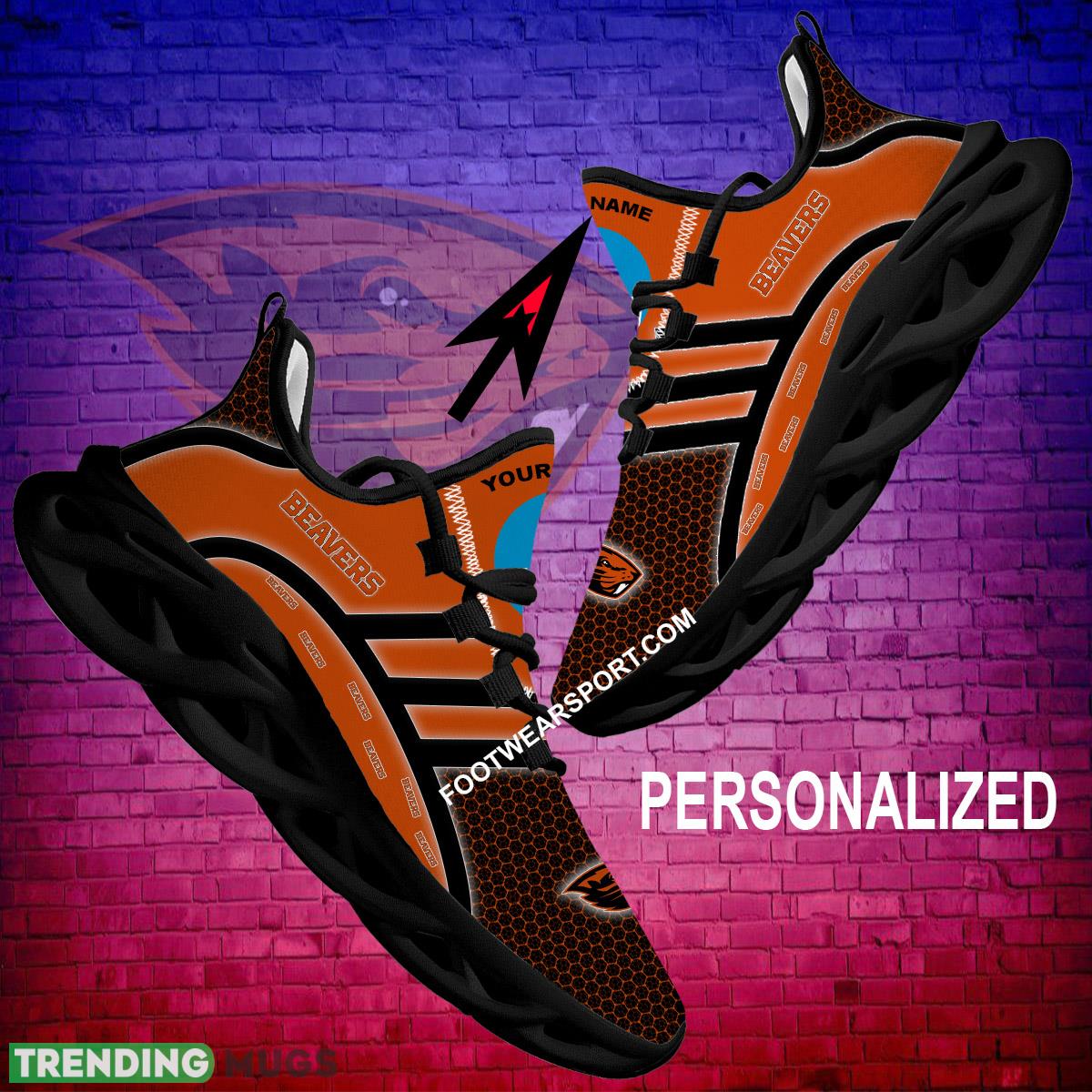 Show off your Oregon State Beavers pride with these custom name NCAA running sneakers! Perfect for both men and women fans, these Max Soul shoes feature a unique graphic design that will make you stand out from the crowd. Whether you’re hitting the gym or cheering on your favorite team, these sneakers are sure to make a statement. Don’t miss out on the opportunity to personalize your footwear with your own name and show your support for the Beavers in style. Order yours today and step up your game!