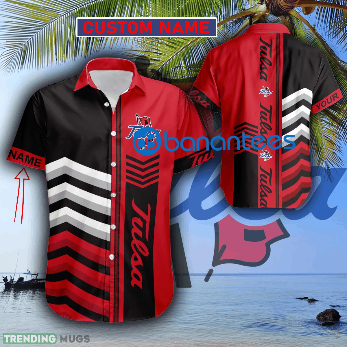 Custom Name NCAA Tulsa Golden Hurricane Tropical Logo 3D Hawaiian Shirt For Summer Details: