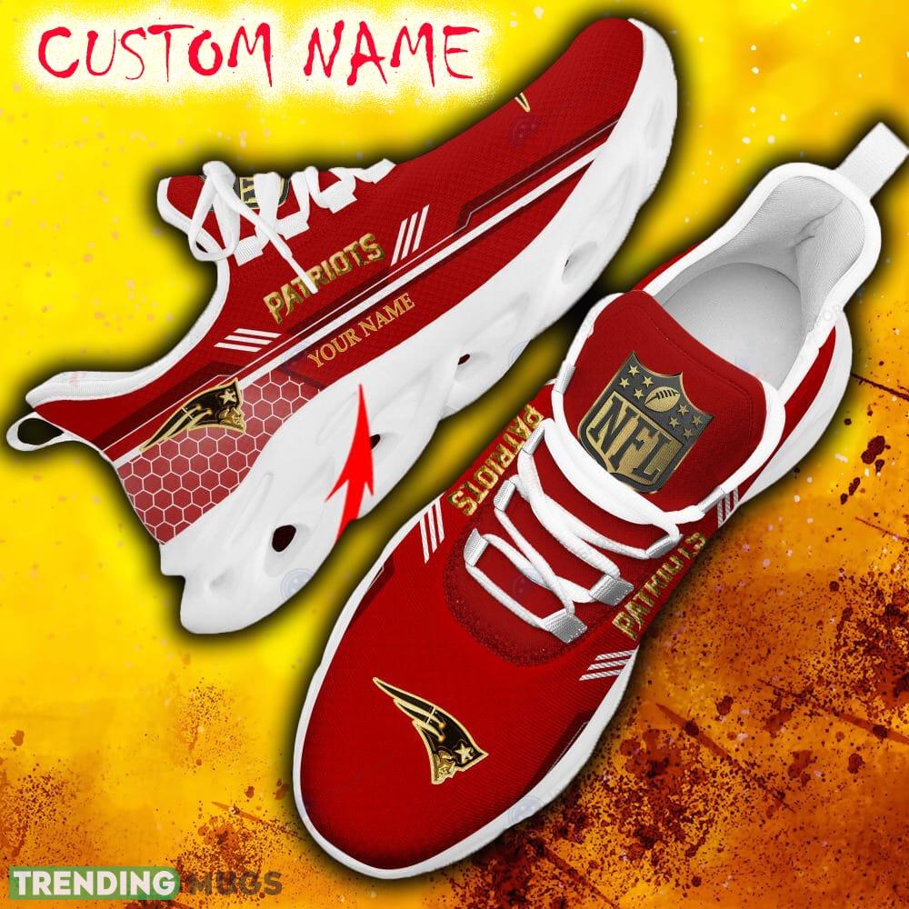 Don’t miss out on the opportunity to own these Custom Name New England Patriots Red All Over Printed Max Soul Shoes. Elevate your fan gear to a whole new level and grab a pair today!