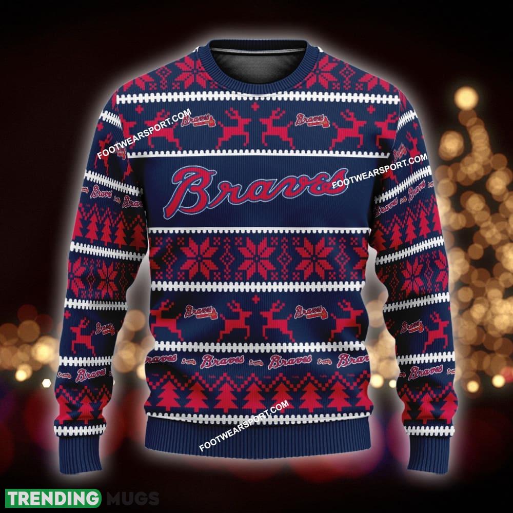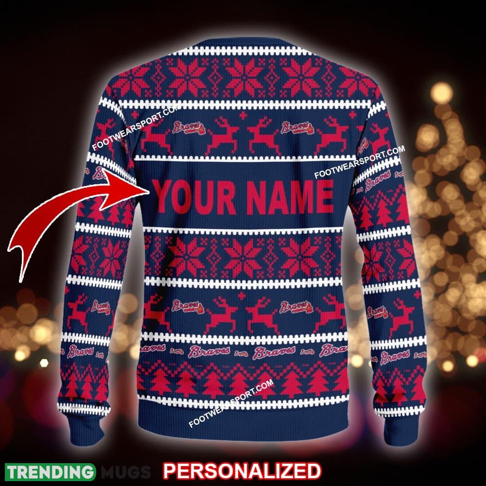 Custom Name NEW Merry Atlanta Braves Knitted Christmas Sweater AOP Gift Holidays - MLB Atlanta Braves Ugly Christmas Sweater For Men And Women Photo 1