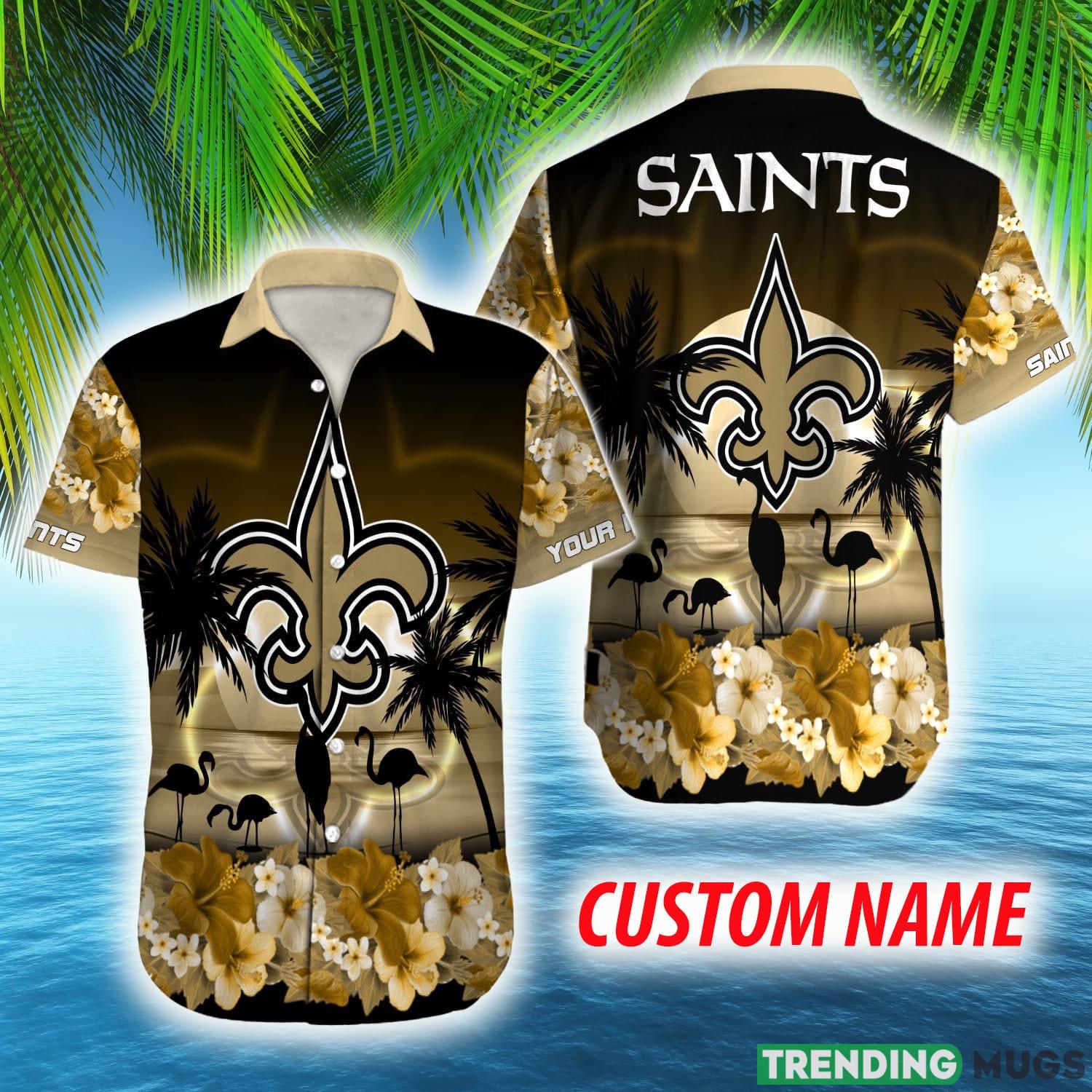 Custom Name New Orleans Saints NFL Flamingo Hibiscus For Men And Women Gift Fans Hawaiian Shirt Details: