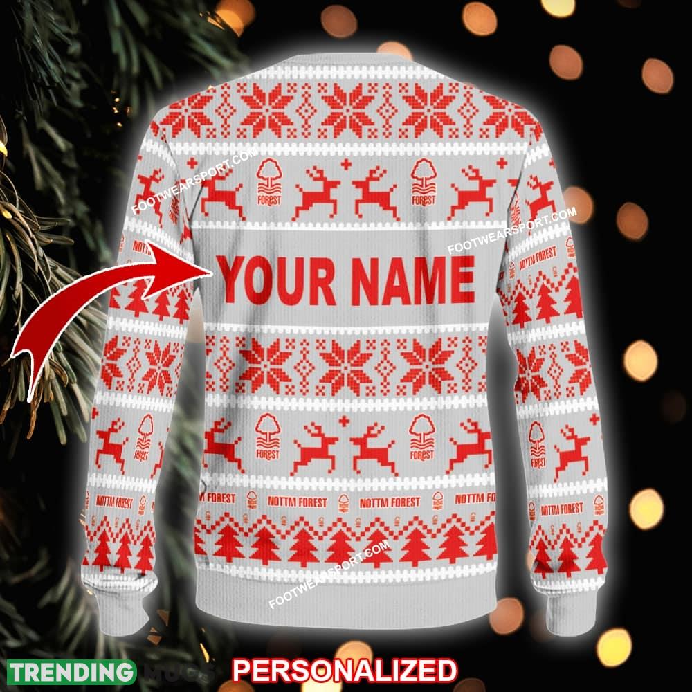 Custom Name NEW Reindeer Nottingham Forest Knitted Christmas Sweater Gift For Adult – EPL Nottingham Forest Ugly Christmas Sweater For Men And Women Photo 2