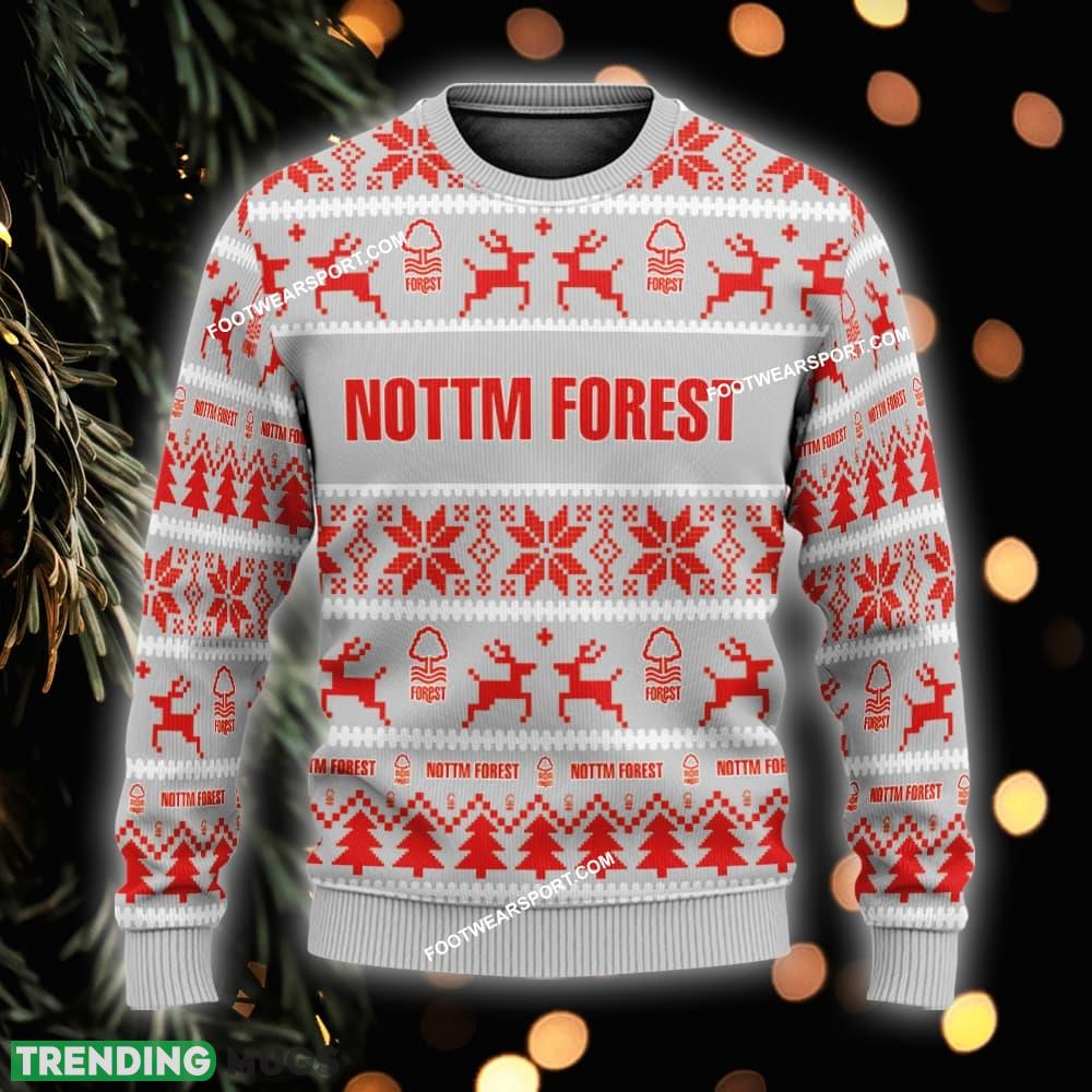 Custom Name NEW Reindeer Nottingham Forest Knitted Christmas Sweater Gift For Adult - EPL Nottingham Forest Ugly Christmas Sweater For Men And Women Photo 1