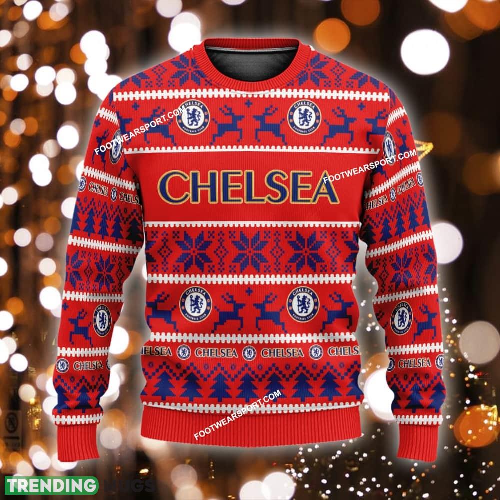 Custom Name NEW Retailer Chelsea Knitted Christmas Sweater AOP Gift Holidays – EPL Chelsea Ugly Christmas Sweater For Men And Women Photo 1