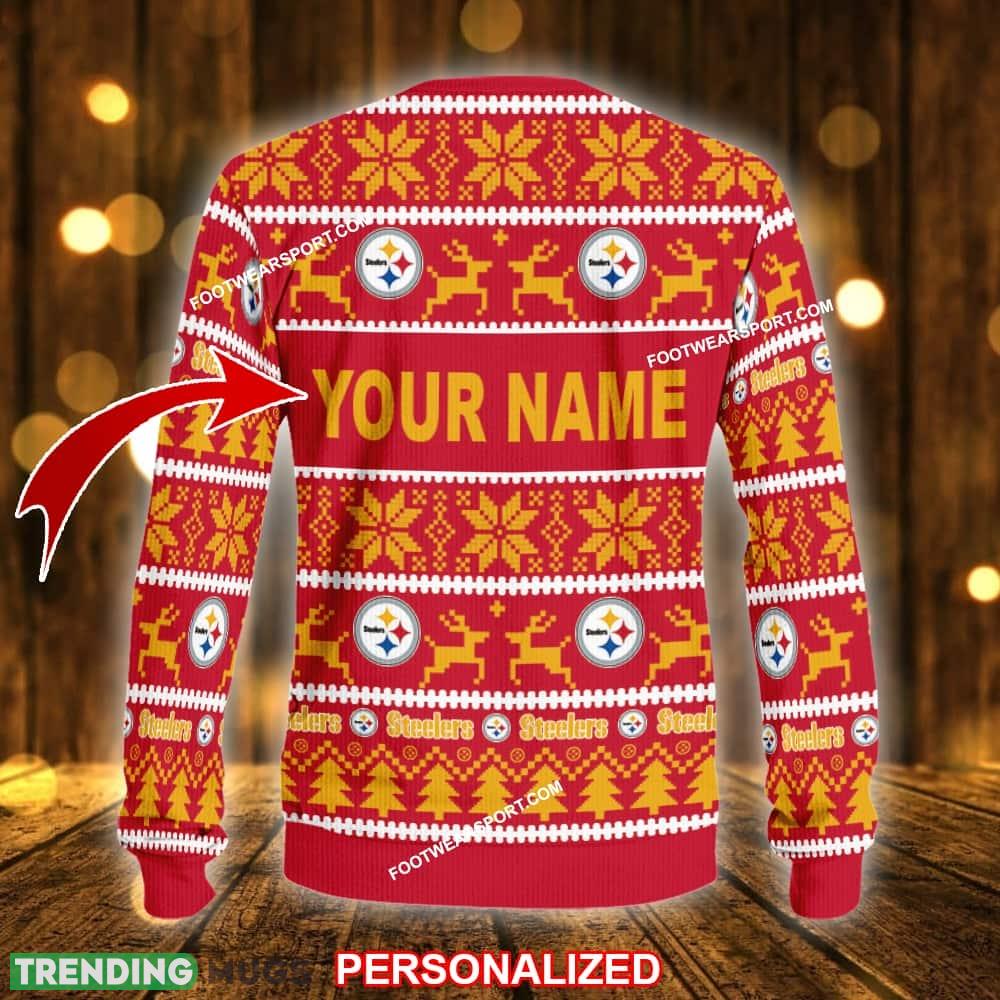 Get into the holiday spirit with our Custom Name NEW Soft Pittsburgh Steelers Ugly Christmas 3D Sweater Gift For Adult! Made with high-quality materials, this sweater is perfect for showing off your team spirit while celebrating the season. Add a personal touch with a custom name, making it a unique and thoughtful gift for any Pittsburgh Steelers fan in your life. Stay cozy and festive this holiday season with our one-of-a-kind sweater!