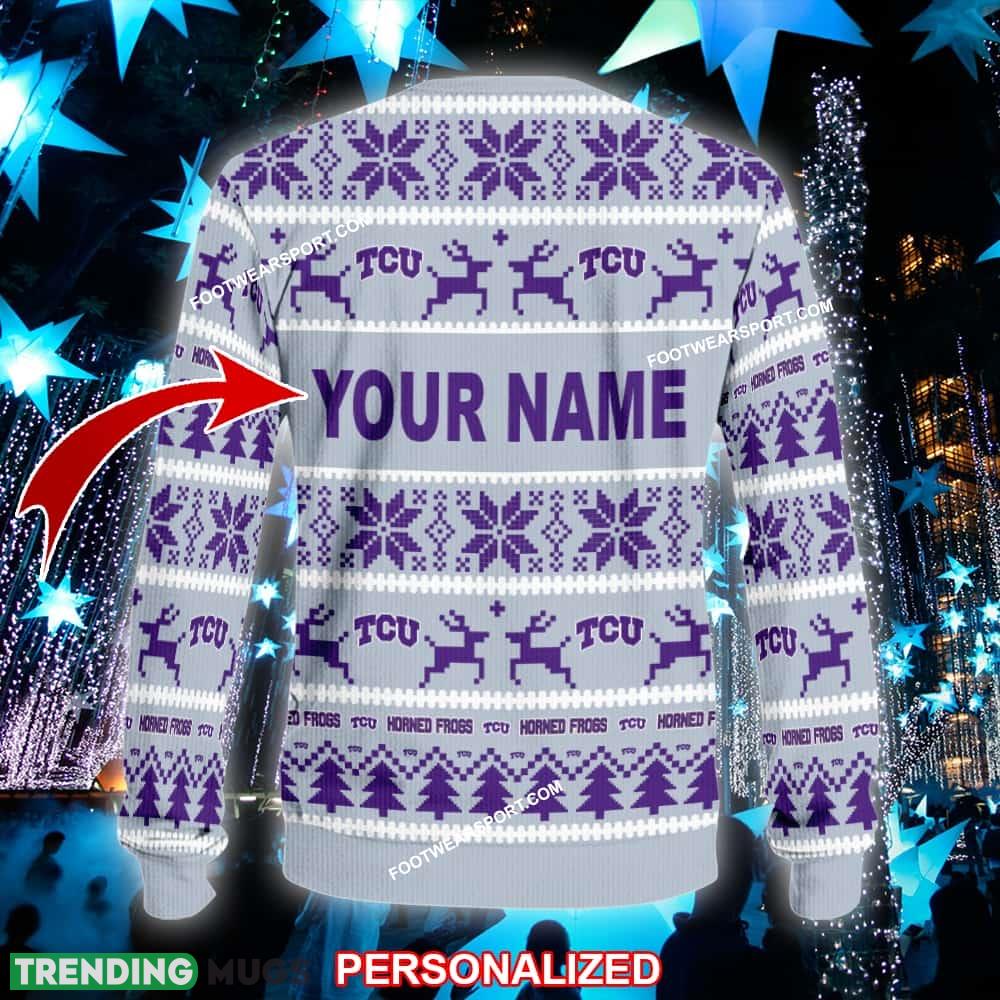 Custom Name NEW Star TCU Horned Frogs Ugly Christmas Sweater Gift Holidays – NCAA TCU Horned Frogs Ugly Christmas Sweater For Men And Women Photo 2