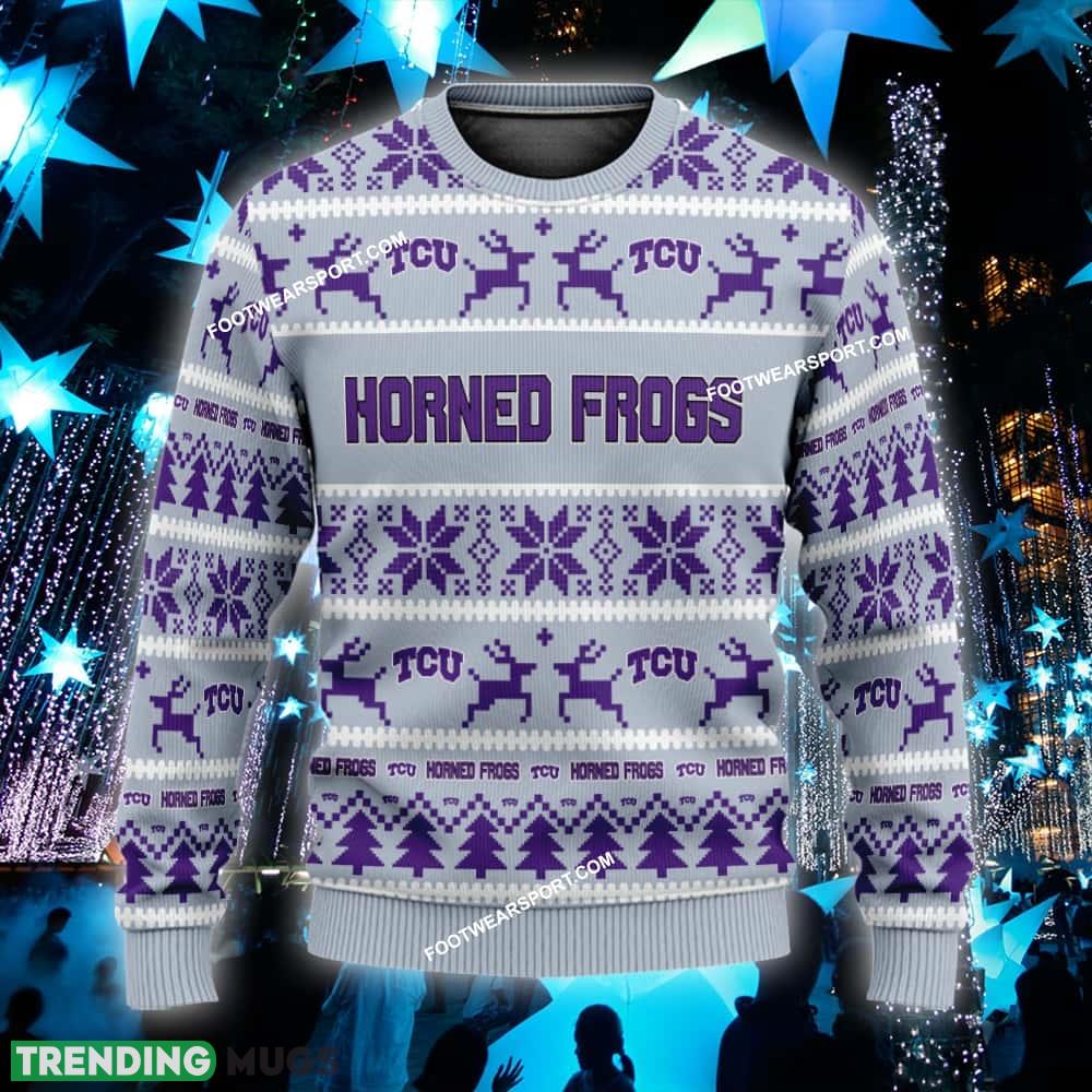Custom Name NEW Star TCU Horned Frogs Ugly Christmas Sweater Gift Holidays – NCAA TCU Horned Frogs Ugly Christmas Sweater For Men And Women Photo 1