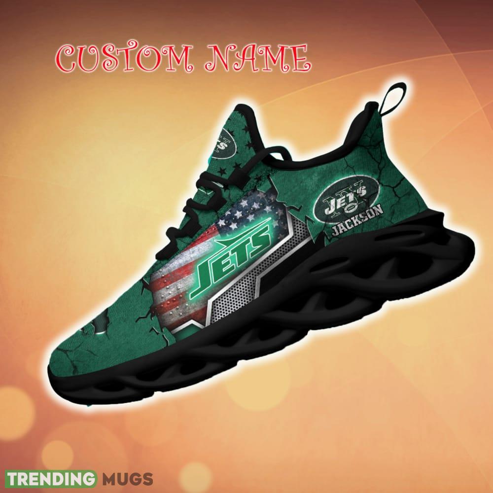 This Custom Name New York Jets Sport Team Chunky Sneakers For Fans Gift New Max Soul Shoes is a breathable, lightweight, and comfortable casual outdoor shoe that has a unique design. It is made of a mesh fabric which makes it sweat absorbent and breathable, while the rubber bottom ensures traction, comfort, and durability. It is available in two colors: black or white sole. There are two styles of shoelace holes so you can choose your preference.