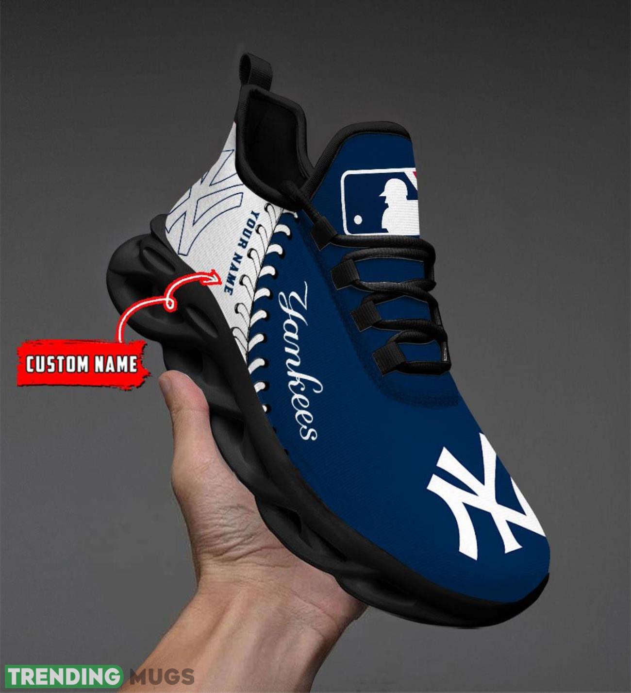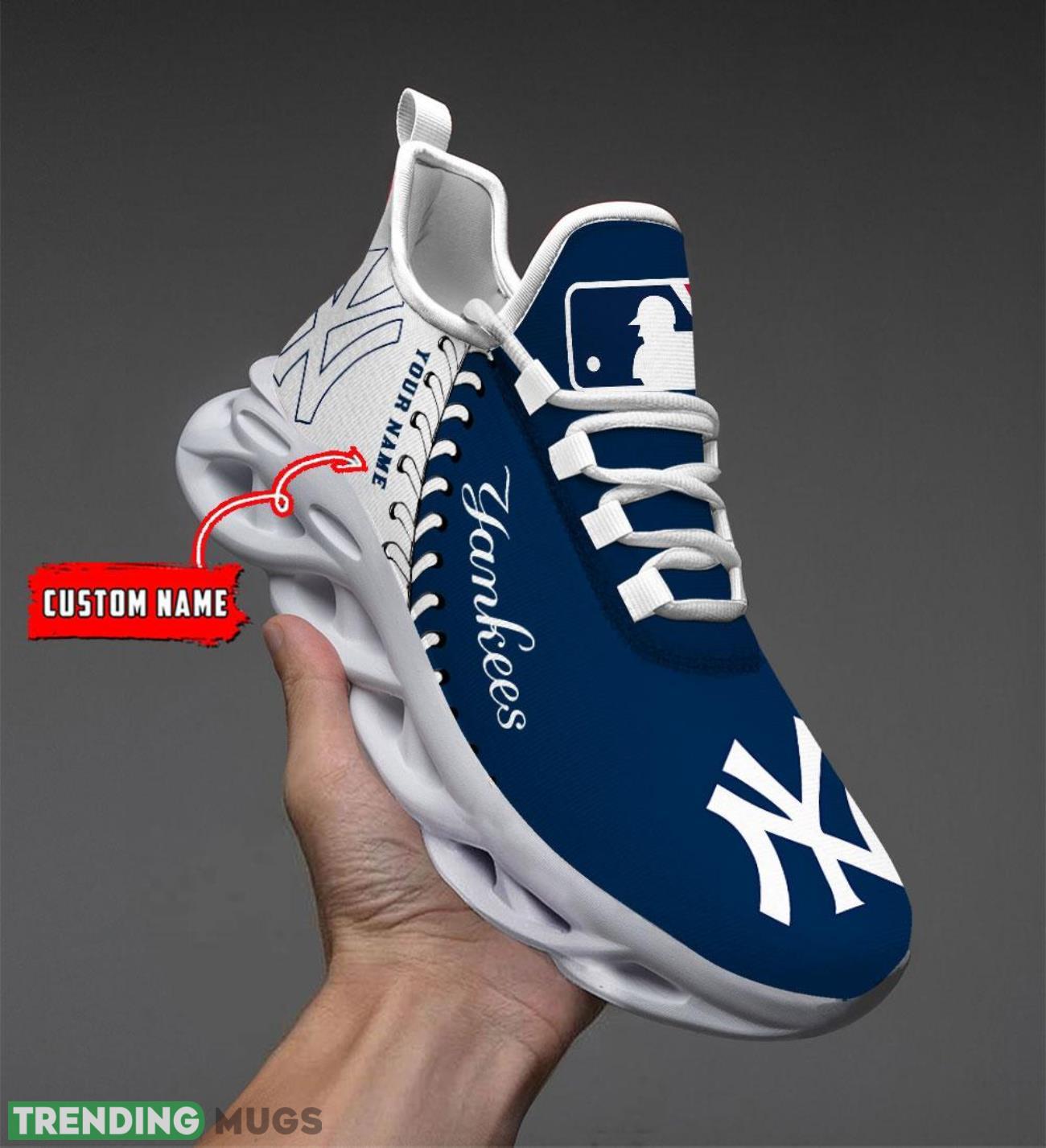 This Custom Name New York Yankees Max Soul Shoes Chunky Sneakers Custom Name is a breathable, lightweight, and comfortable casual outdoor shoe that has a unique design. It is made of a mesh fabric which makes it sweat absorbent and breathable, while the rubber bottom ensures traction, comfort, and durability. It is available in two colors: black or white sole. There are two styles of shoelace holes so you can choose your preference.