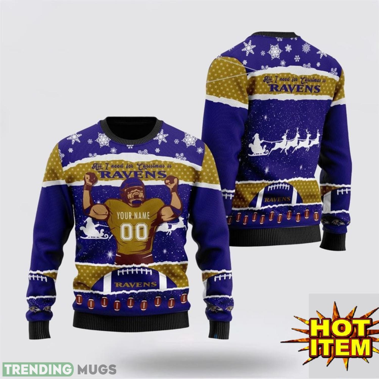 Custom Name NFL Baltimore Ravens All I Need For Christmas Ugly Christmas Sweater Sport Fans Gift Informations:
